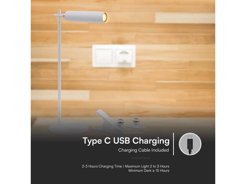 Lampa magnetica LED reincarcabila 3W, 300lm, 3 metode de montare, alba