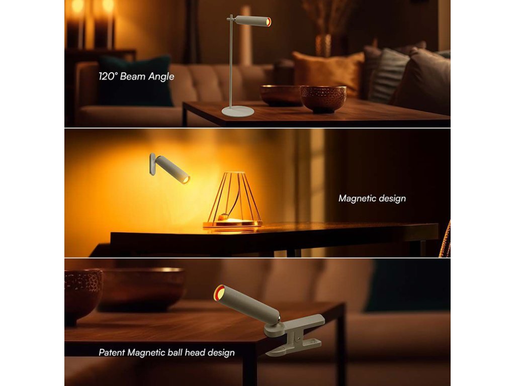 - Montarea cu o bază magnetică permite atașarea ușoară a lămpii