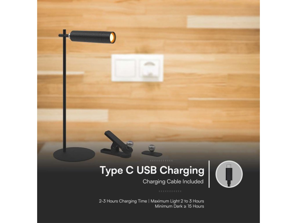 Lampa magnetica LED reincarcabila 3W, 300lm, 3 metode de montare, neagra