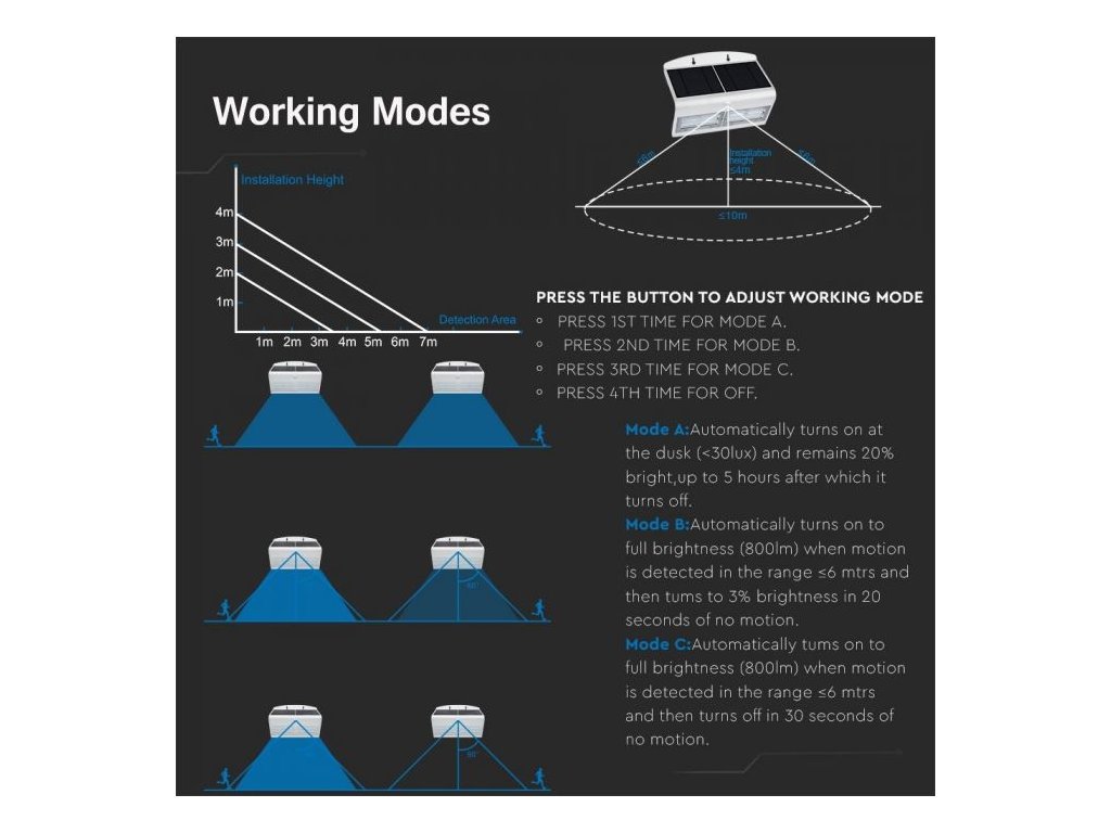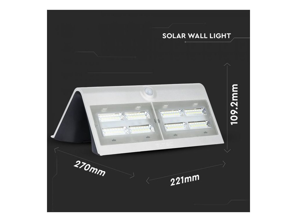 LAMPĂ SOLARĂ CU SENSOR DE MIȘCARE 7W, 800lm, alb/negru, IP65, 4000K