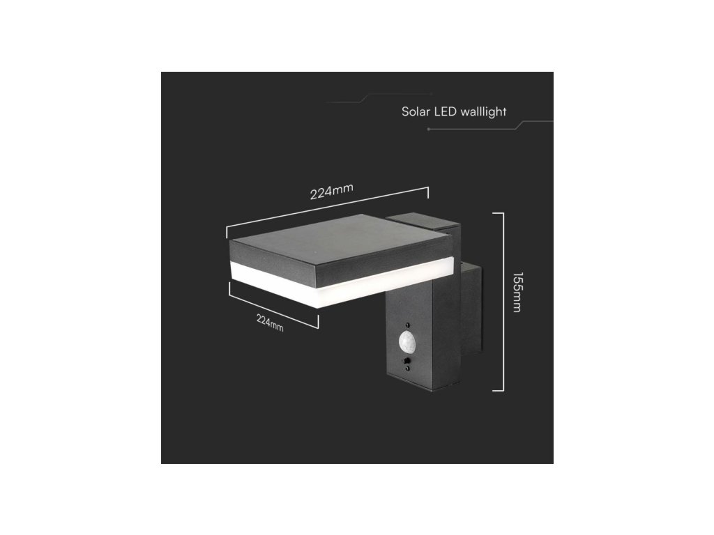 Lampă solară LED cu senzor 2W, 220lm, 2200mAh, 3000K, IP54