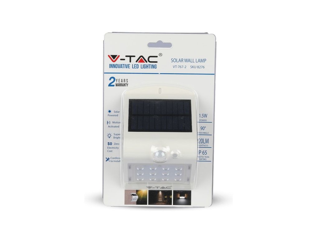 LAMPA SOLARĂ LED CU SENZOR DE MIȘCARE 1,5W (220 lm), IP65, alb/2-PACK!