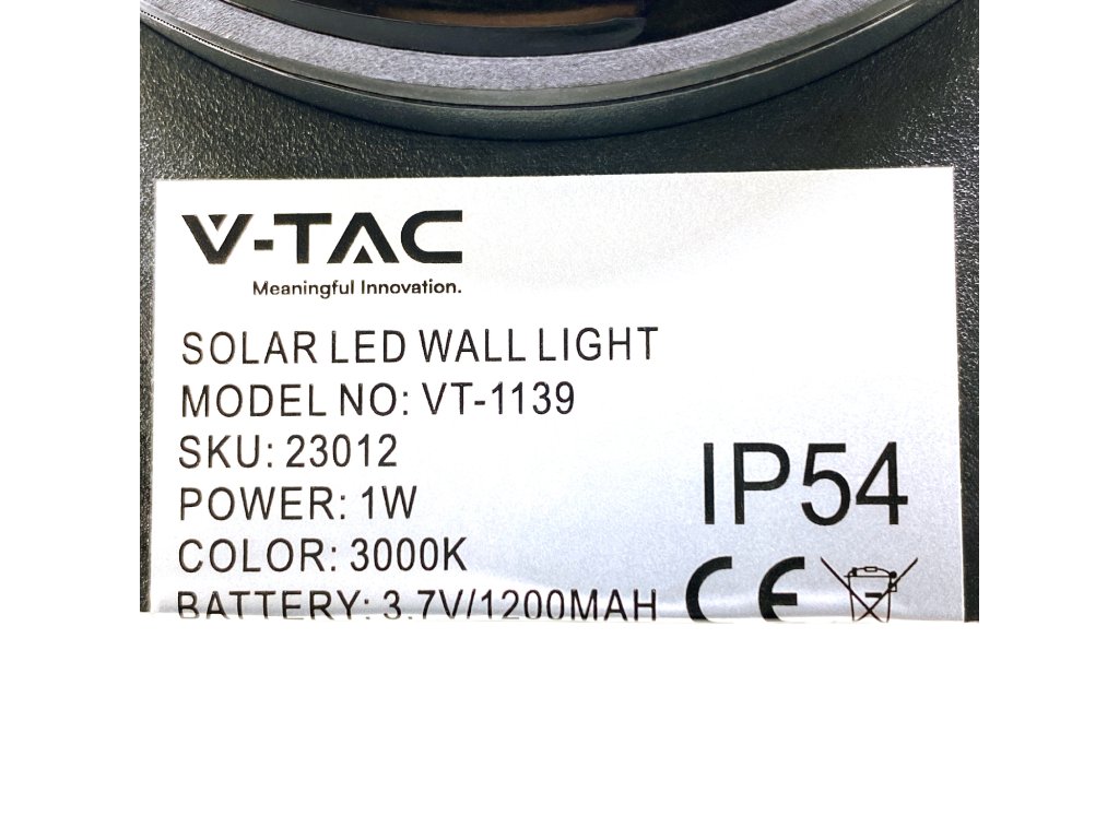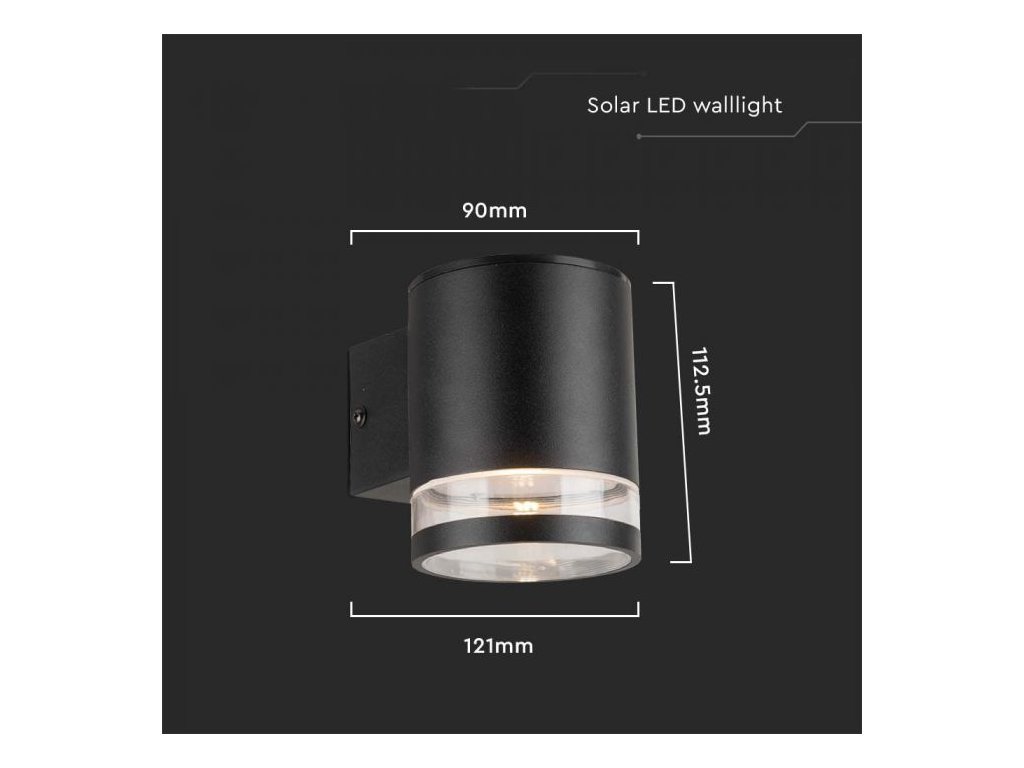 Lampa solară LED de perete 1W, neagră, IP54, 3000K/2-PACK!