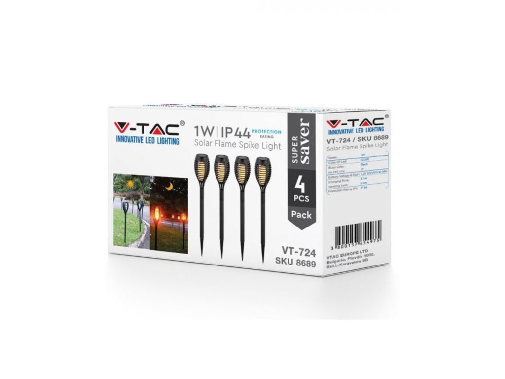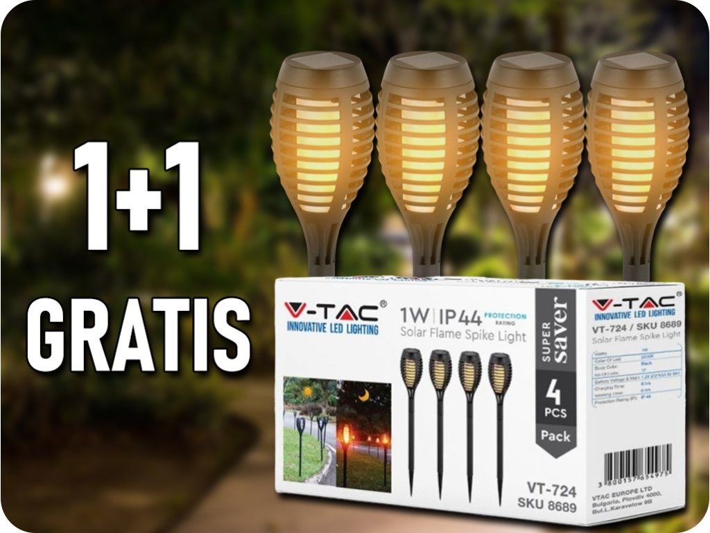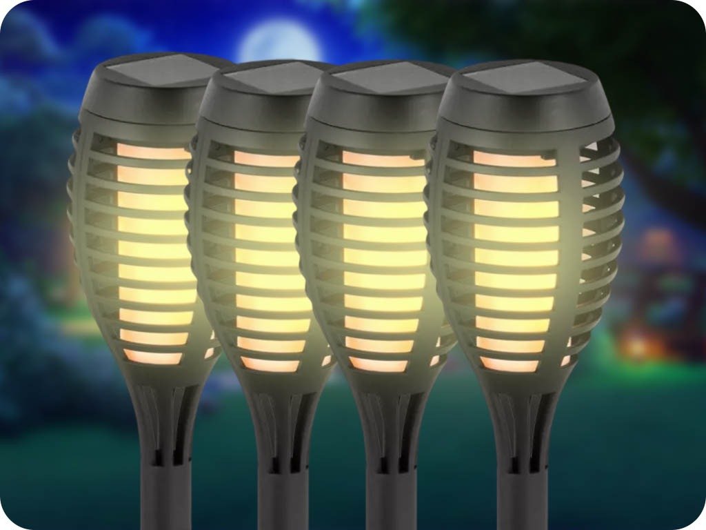 Lampa solara LED incastrata flacara 1W, 2200K, IP44, pachet 4 bucati, 1+1 gratis!