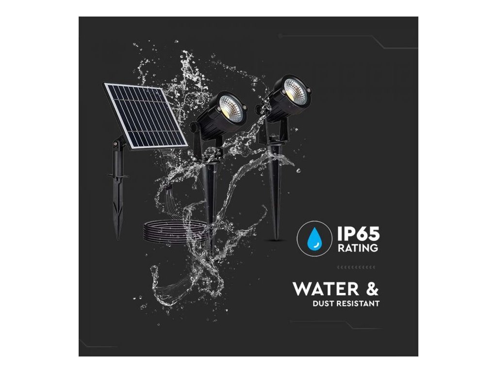 Lampadare solare LED 2x1.2W, 2x90lm, IP65, negre, 3000K/2-PACK!