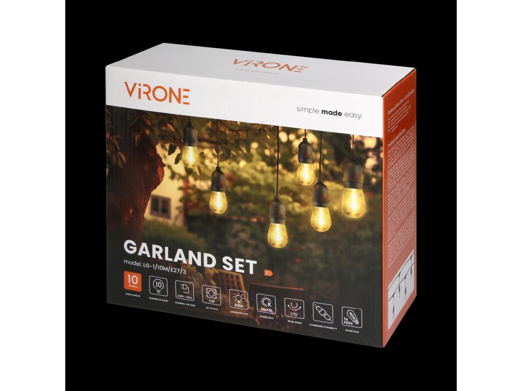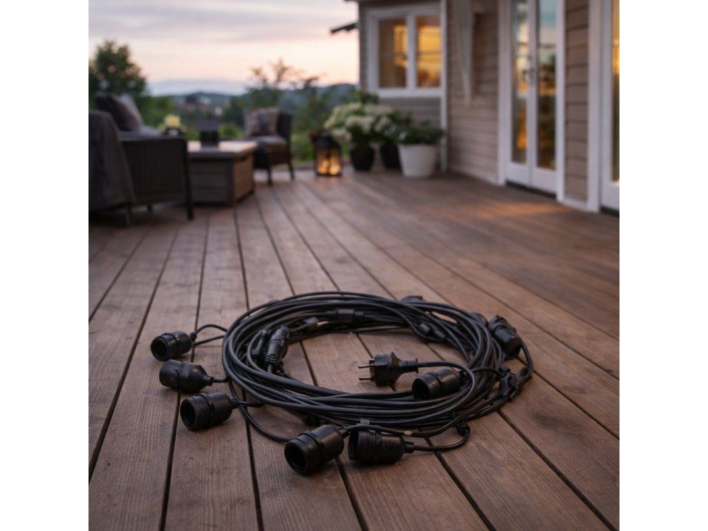 Lanț de lumină cu LED 10m + 10x bec E27 1W, 80ml, negru, 1+1 gratis! [LG-3/10M/E27/3]