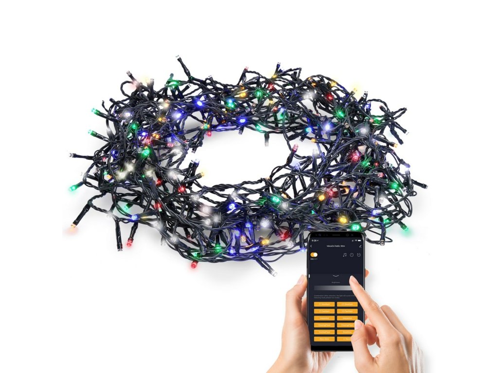 Lanț decorativ inteligent LED WIFI pentru exterior, 240 LED-uri, 12m, sursă de alimentare 5m, alb cald + RGB [1V12-WIFI]