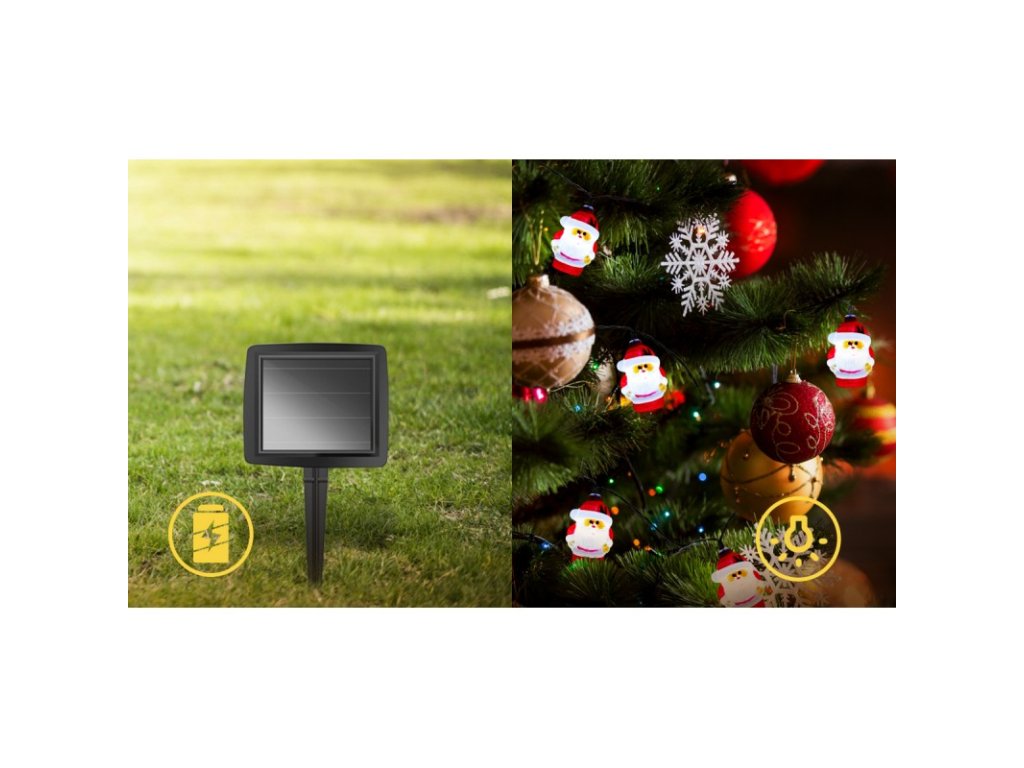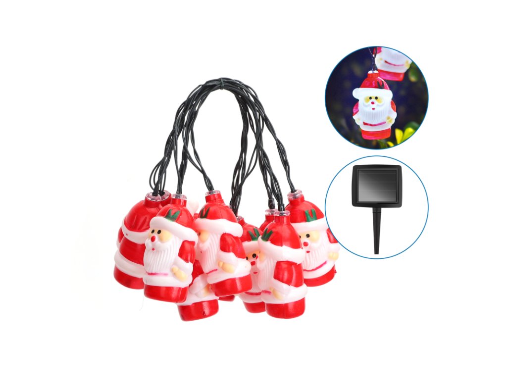 Lanț solar LED MOș, 3,8m, 10XSANTA, 2 moduri, IP44, 5500K-6500K [102704VRK]