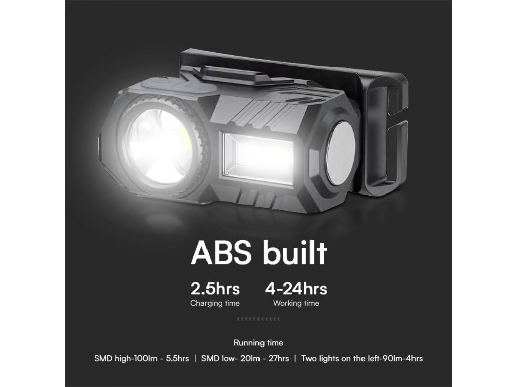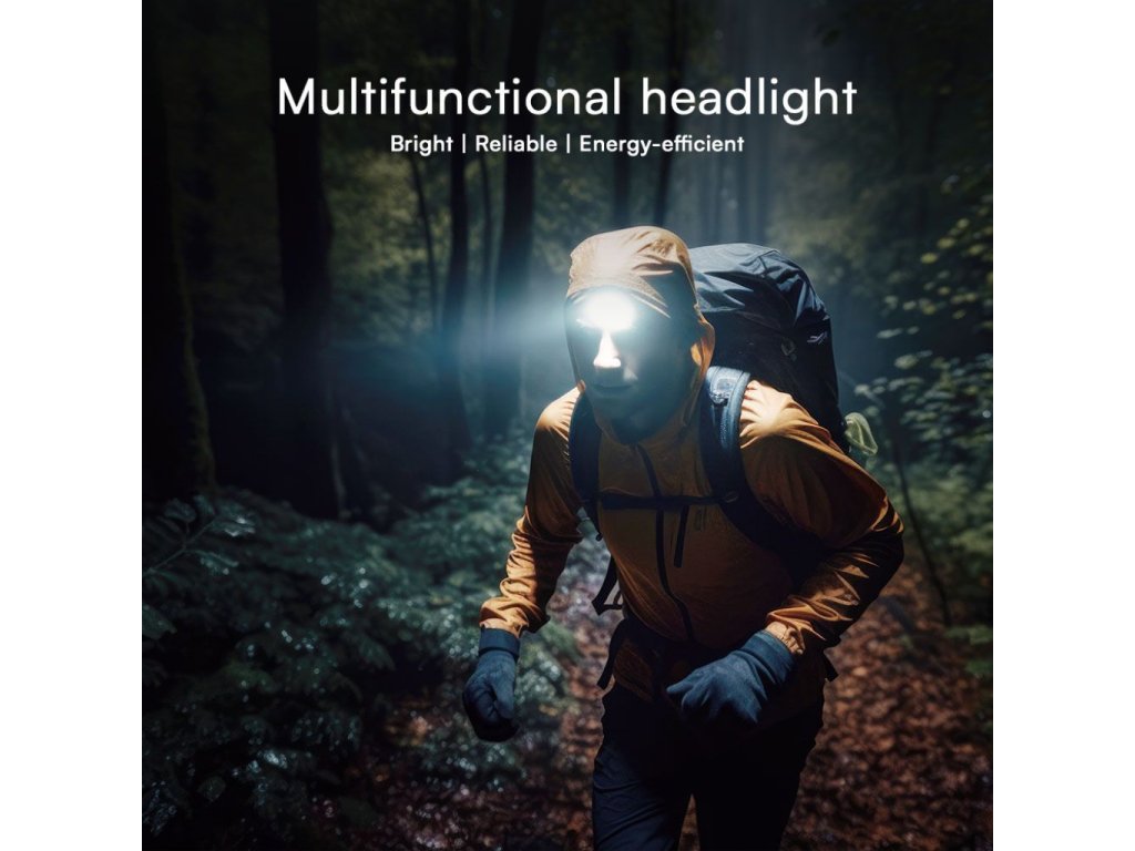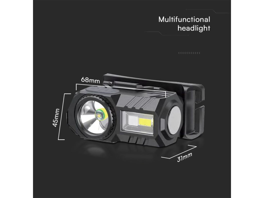 Lanterna frontală LED reîncărcabilă 3W, 100lm, RGB, încărcare prin USB-C, IP43, 750mAh