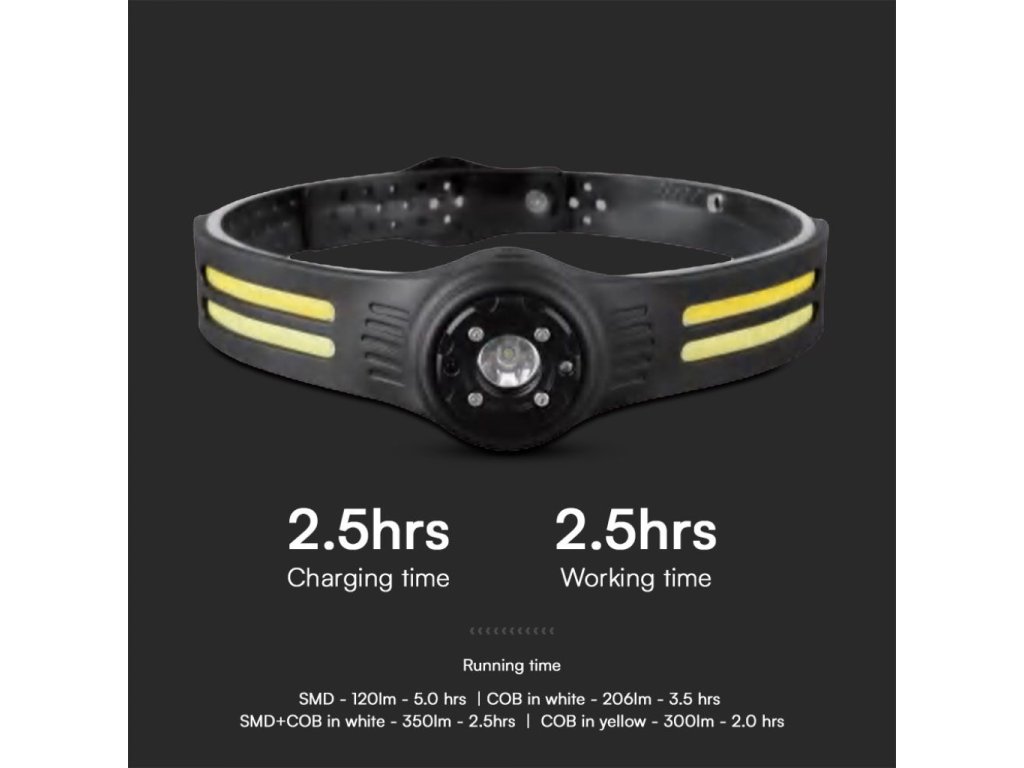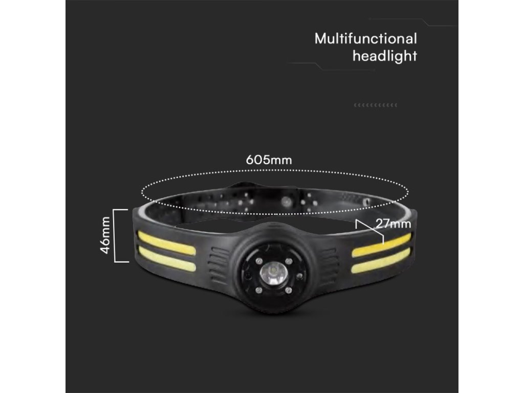 Lanterna frontală LED reîncărcabilă 3W XPE + 5W COB, 120lm+350lm, 650mAh, USB-C, IP43