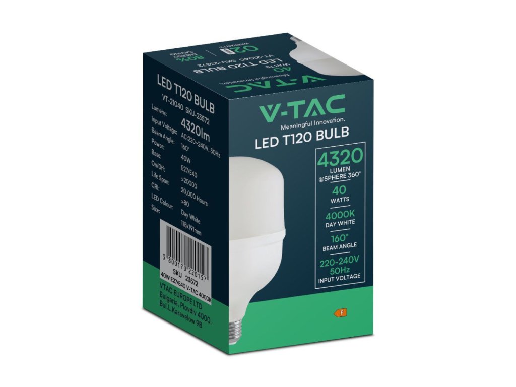 LED bec E27/E40, T120, 40W, 4320lm, 160°, IP20
