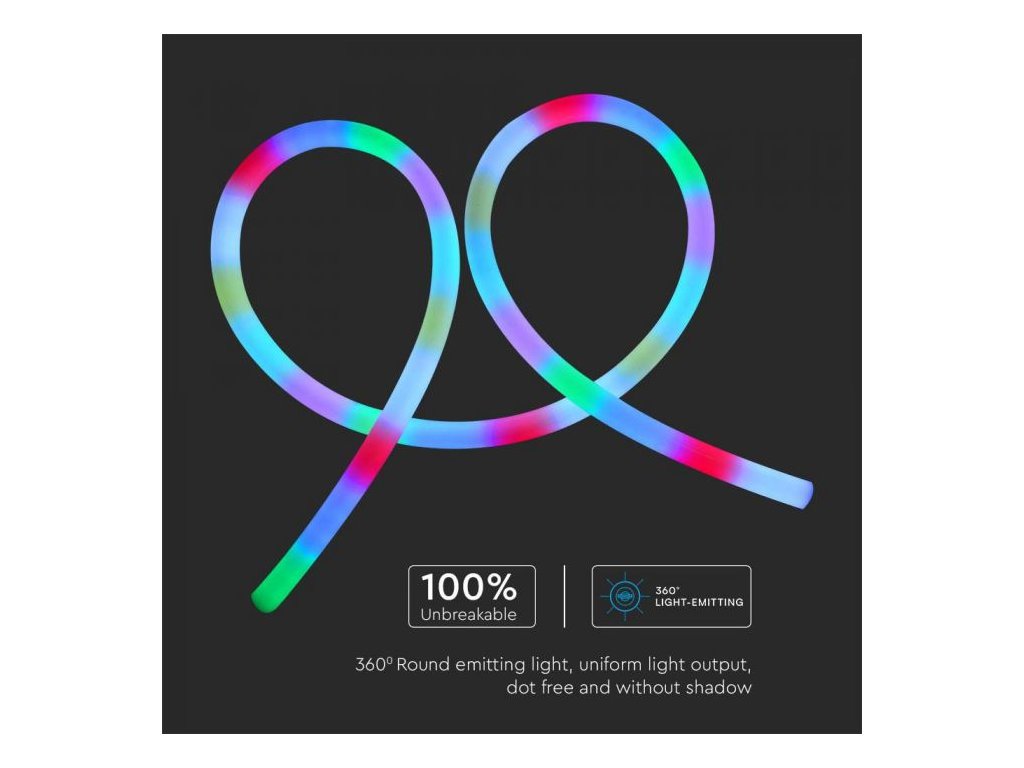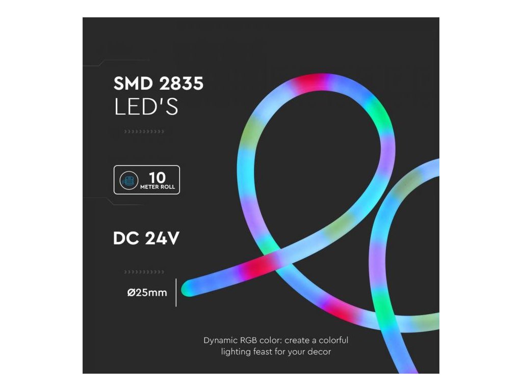 LED NEON FLEX magic RGB + telecomanda 24W/m 24V 360° diametru 25mm ambalaj 5m
