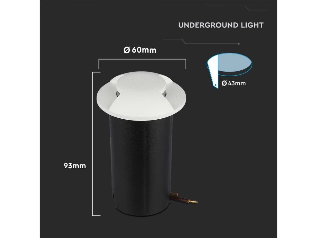 LED spot light încorporabil în sol 1W, 50lm, 12V, IP67, două direcții de iluminare, alb, 3000K