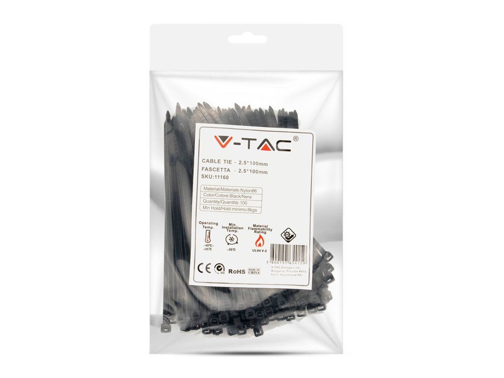 Legătură de cablu 2,5x100 mm, neagră, pachet de 100 buc [11160]