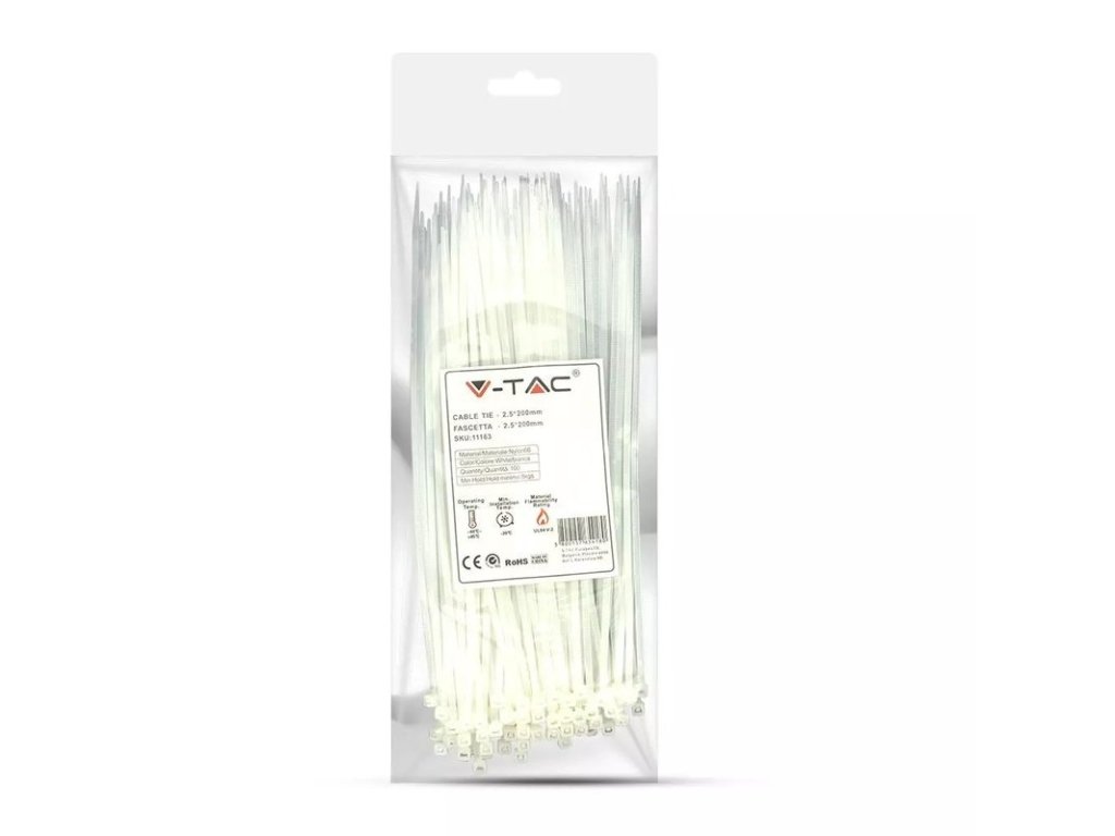 Legătură de cablu 2,5x200 mm, albă, pachet 100 buc [11163]