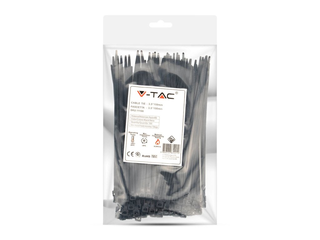 Legătură de cablu 3,5x150 mm, neagră, pachet 100 buc [11166]