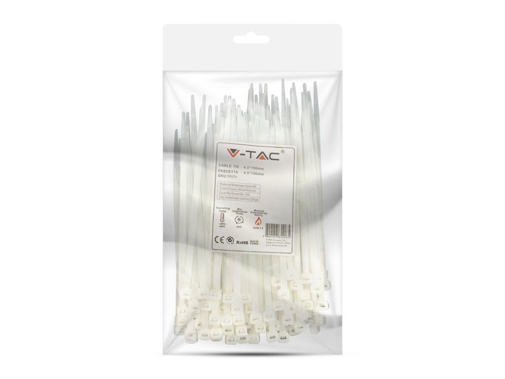 Legătură de cablu 4,5x150 mm, albă, pachet 100 buc [11171]