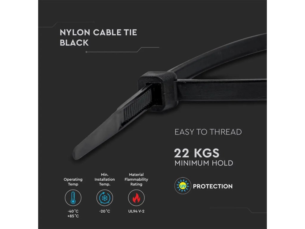 Legătură de cablu 4,8x200 mm, neagră, pachet 100 buc [11177]