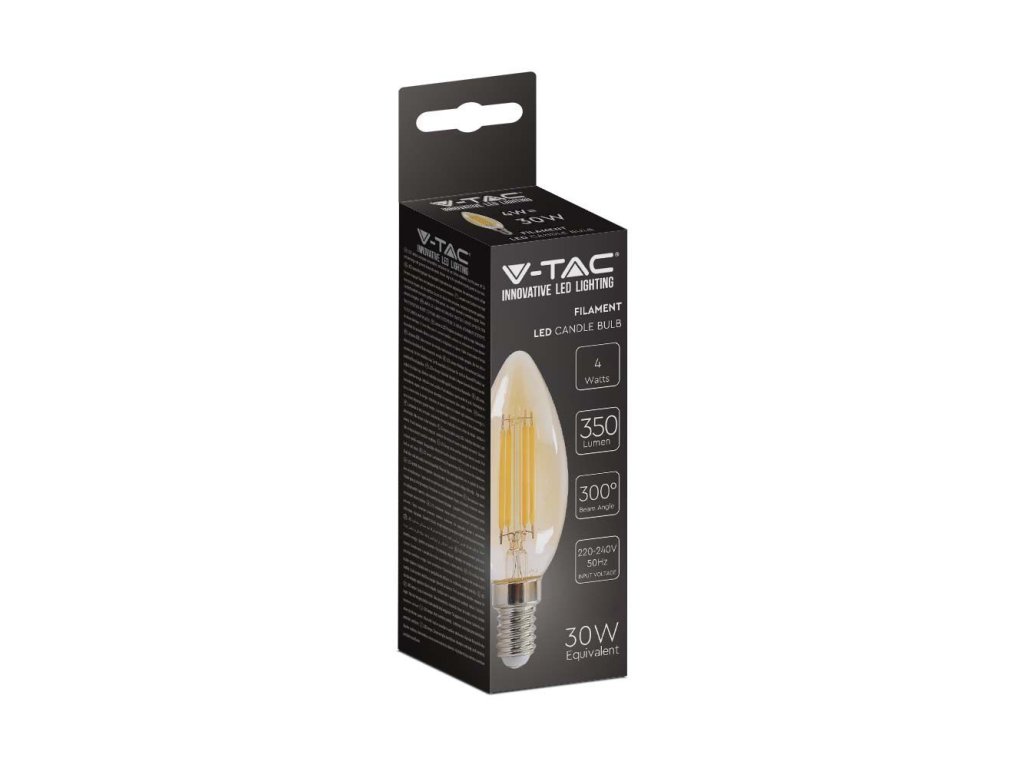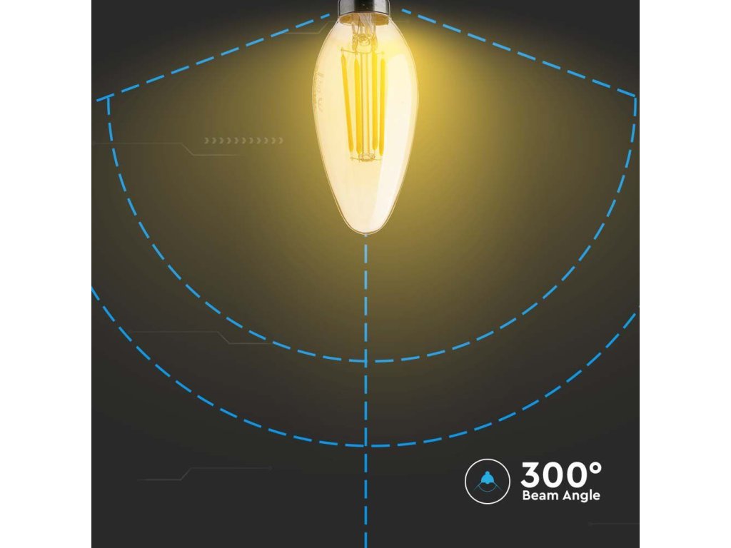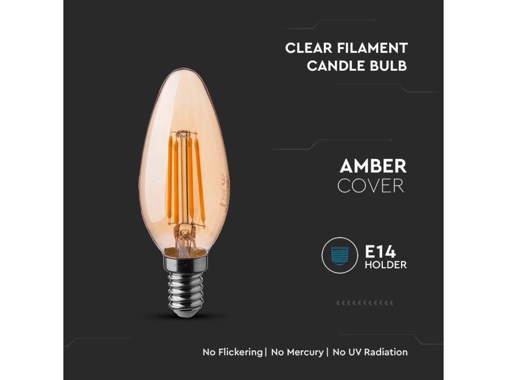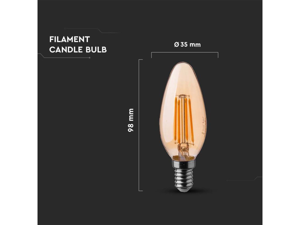 Lumanare cu bec cu filament LED retro, E14, 4W, 350lm, sticla chihlimbar, 2200K, cu flacara