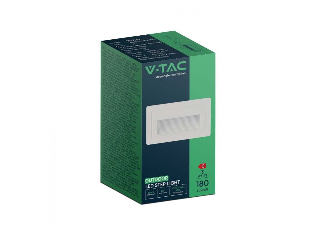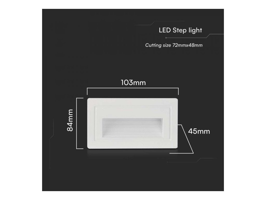 Lumină încasabilă pentru scară cu LED de exterior dreptunghi, 3W, 180lm 270°, 3000K, rezistent la apă, IP65