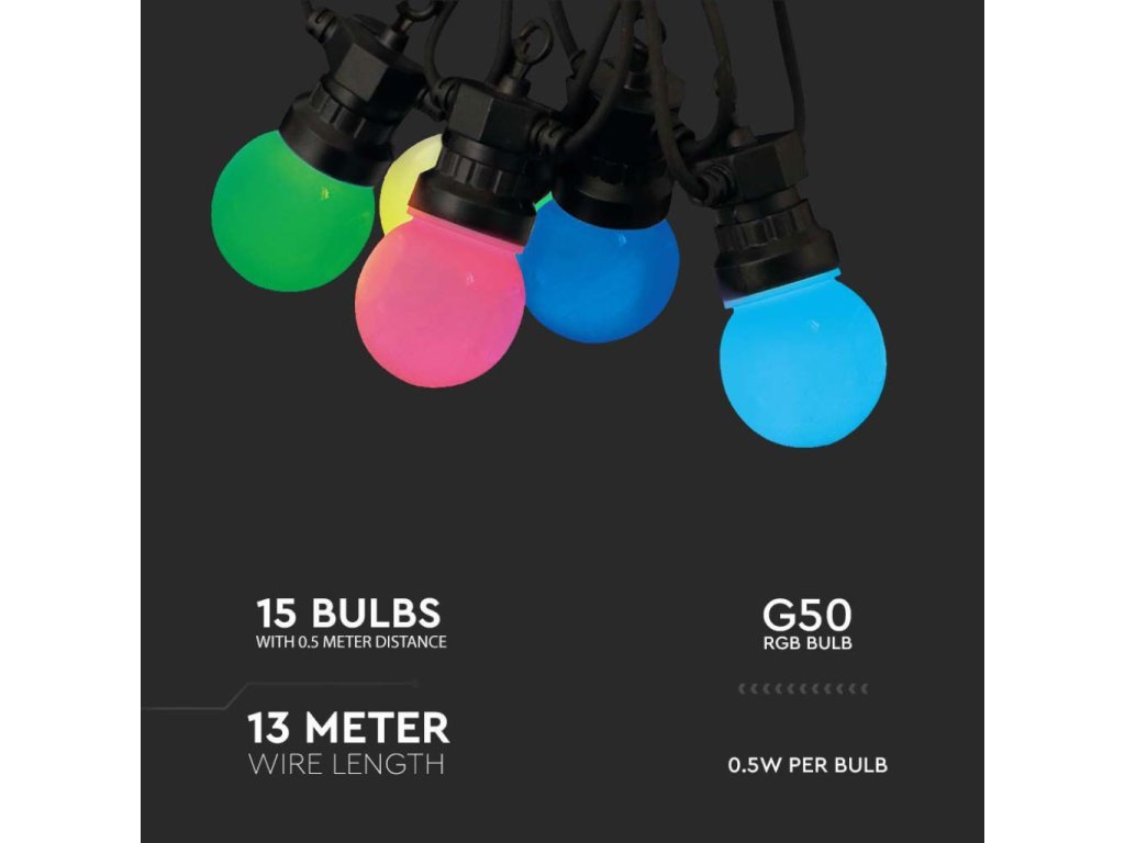 Lumina LED cu fir RGB 7,5W, 15xLED, 13m, IP44