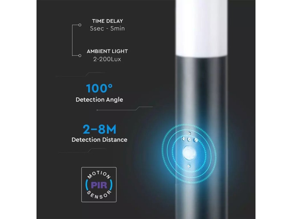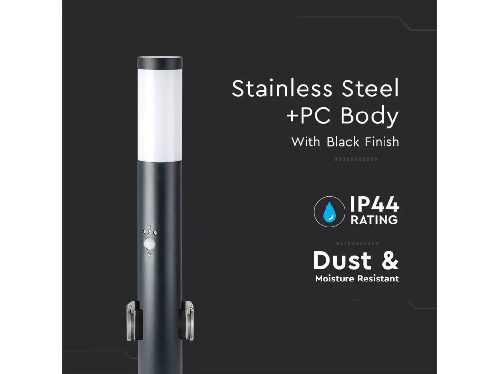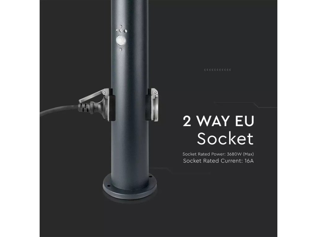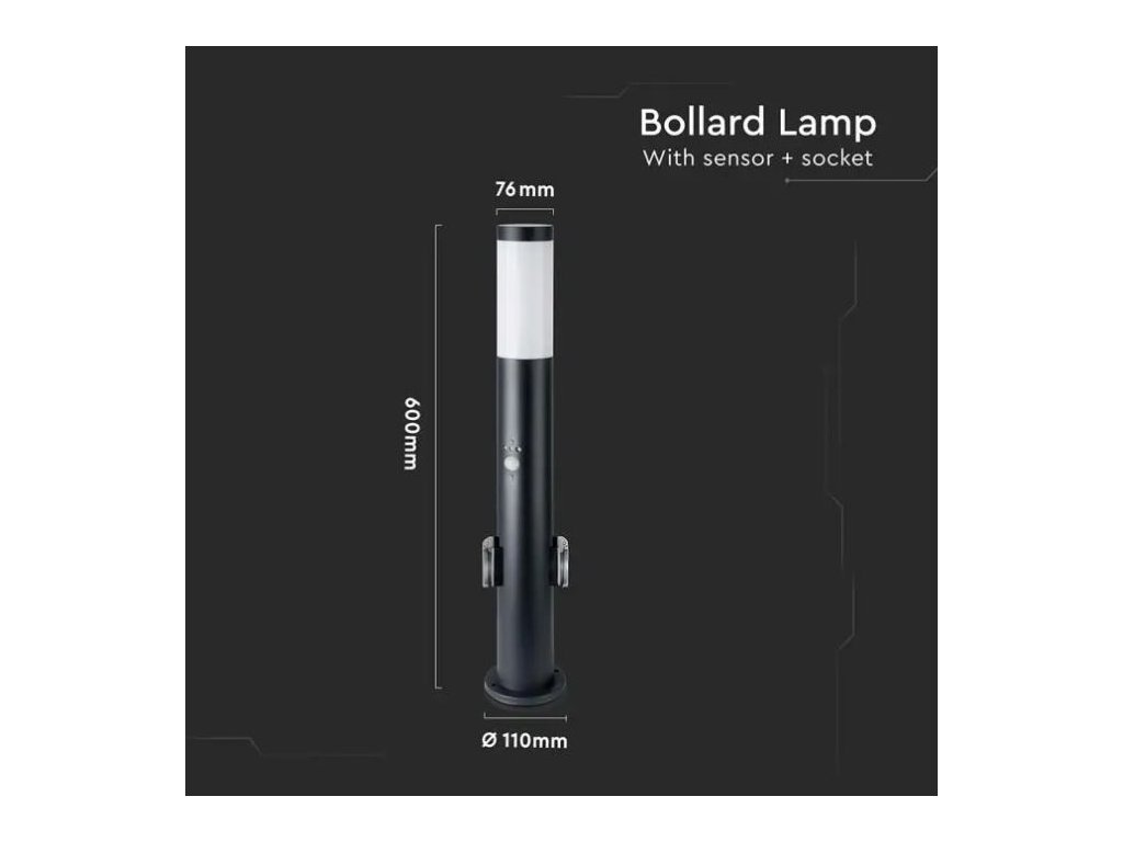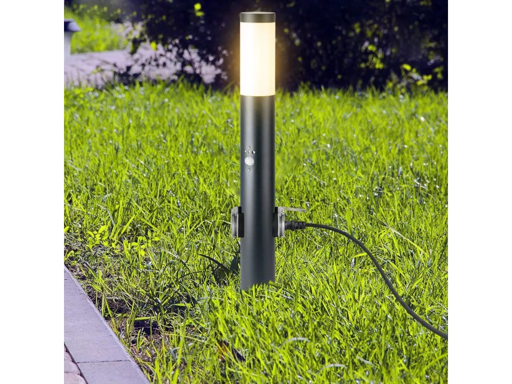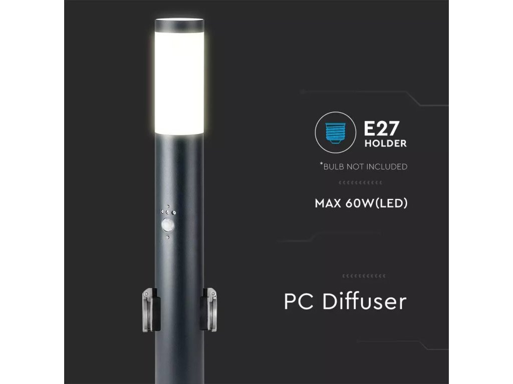 Lumină LED de grădină cu senzor PIR 1xE27, 60cm, 2xprize IP44, negru
