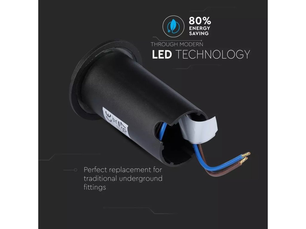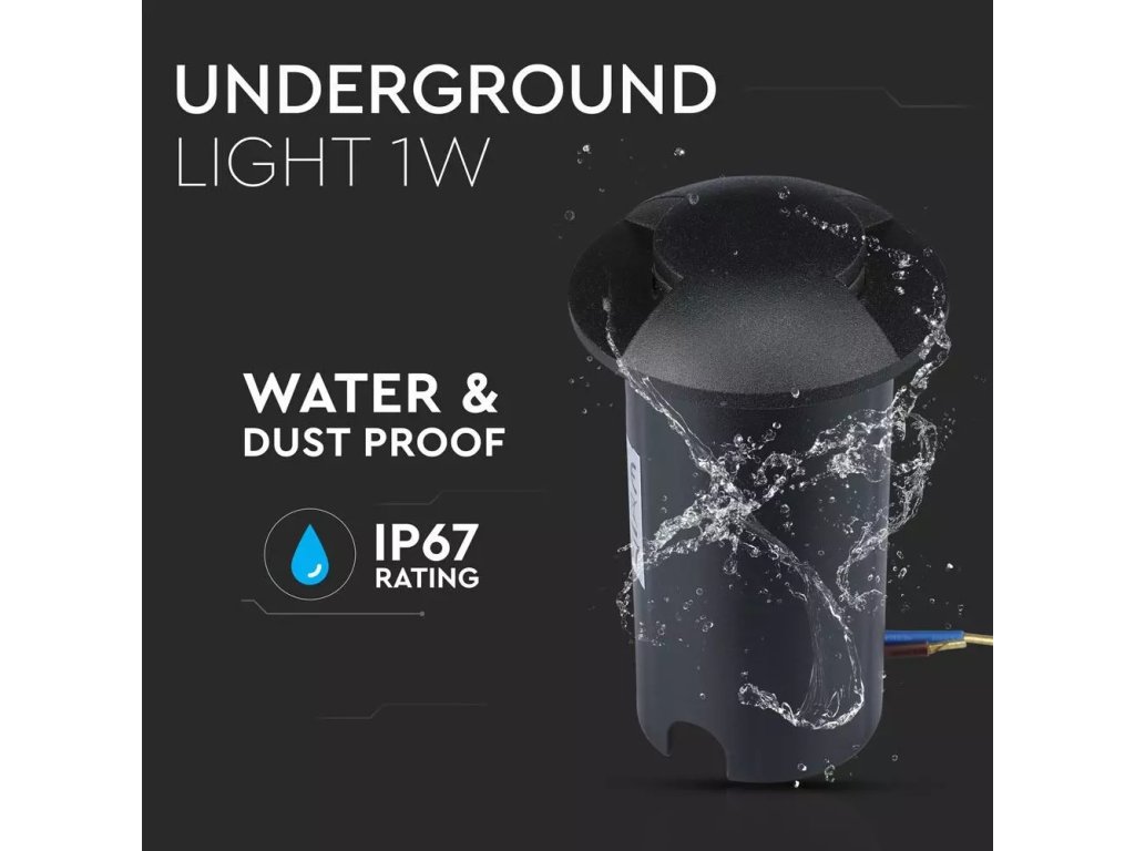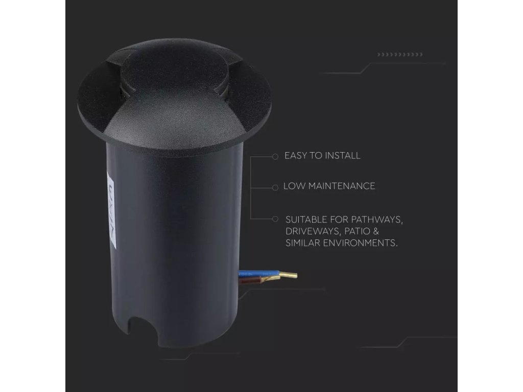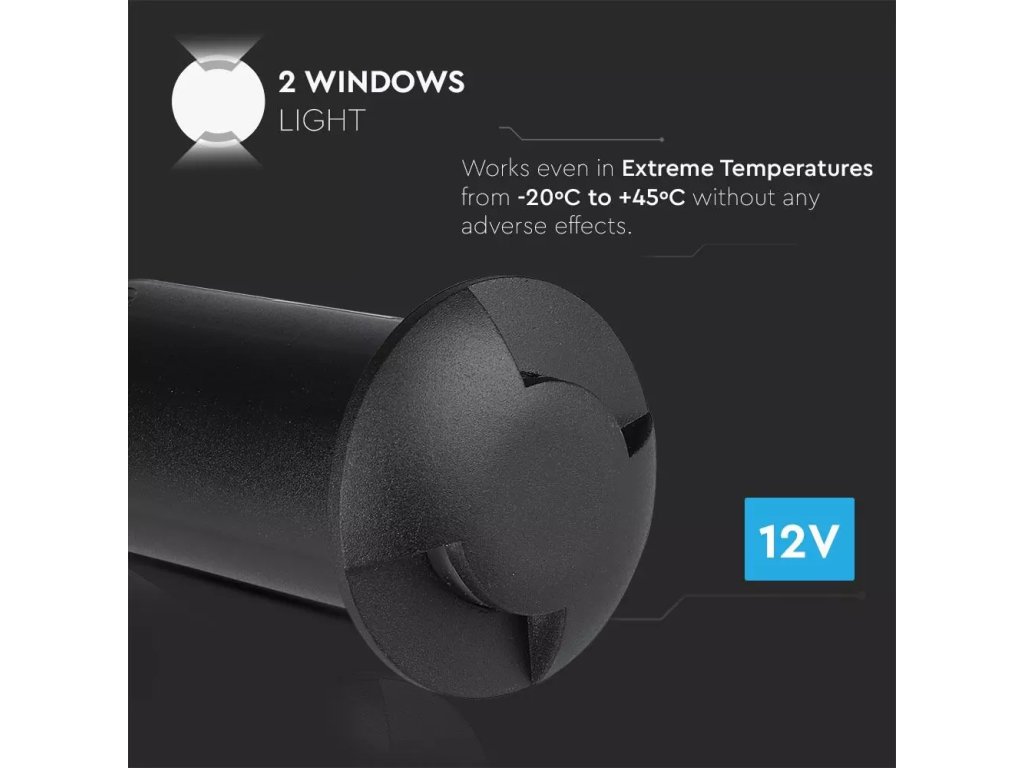 Lumină LED încastrată în pământ 1W, 10LM, 90°, două direcții de iluminare, 12V, IP67, negru, 6400K