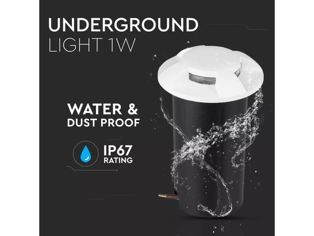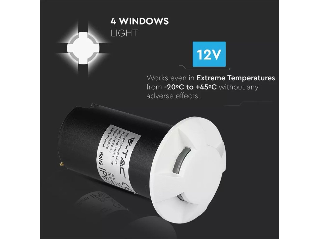 Lumină LED încastrată în pământ 1W, 10LM, 90°, patru direcții de iluminare, 12V, IP67, alb
