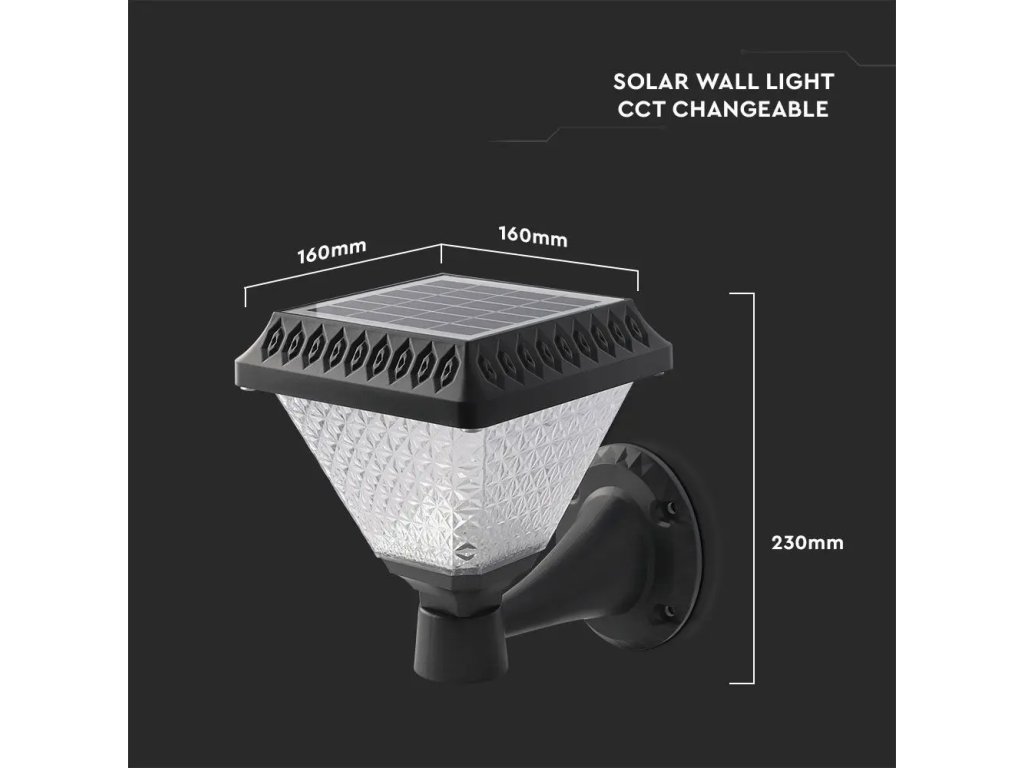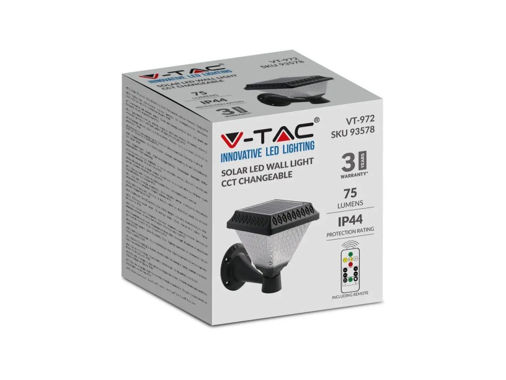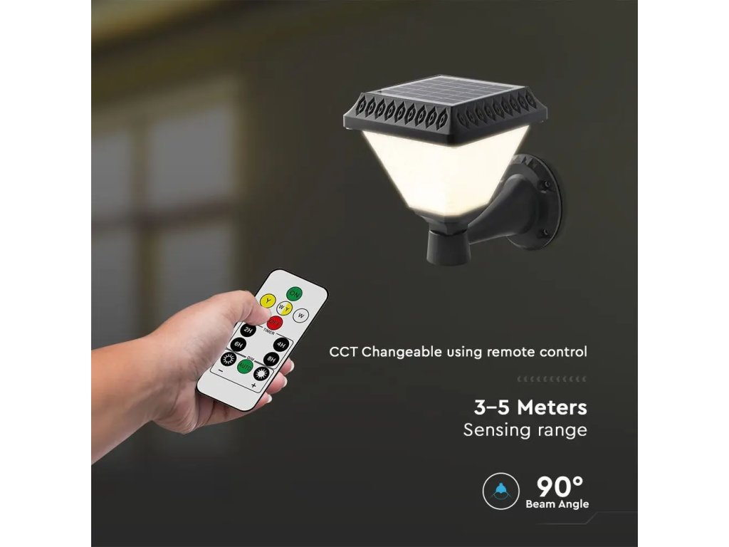 Lumină solară LED cu telecomandă 0,8W, 75lm, CCT, IP44, pătrat