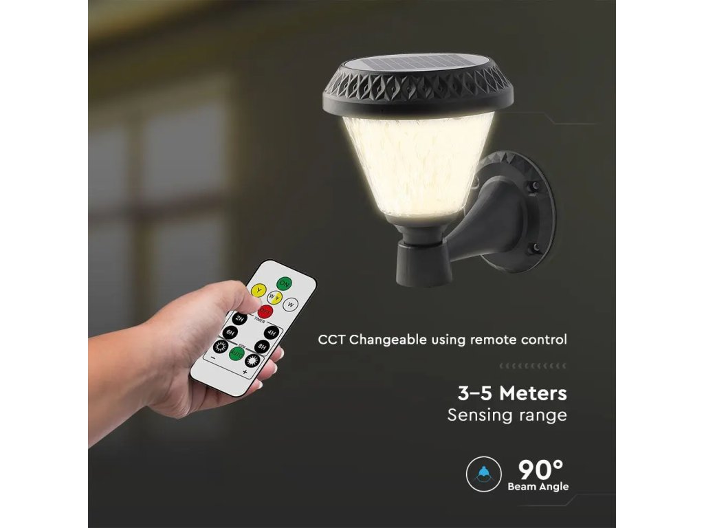 Lumină solară LED cu telecomandă 0,8W, 75lm, CCT, IP44, rotundă