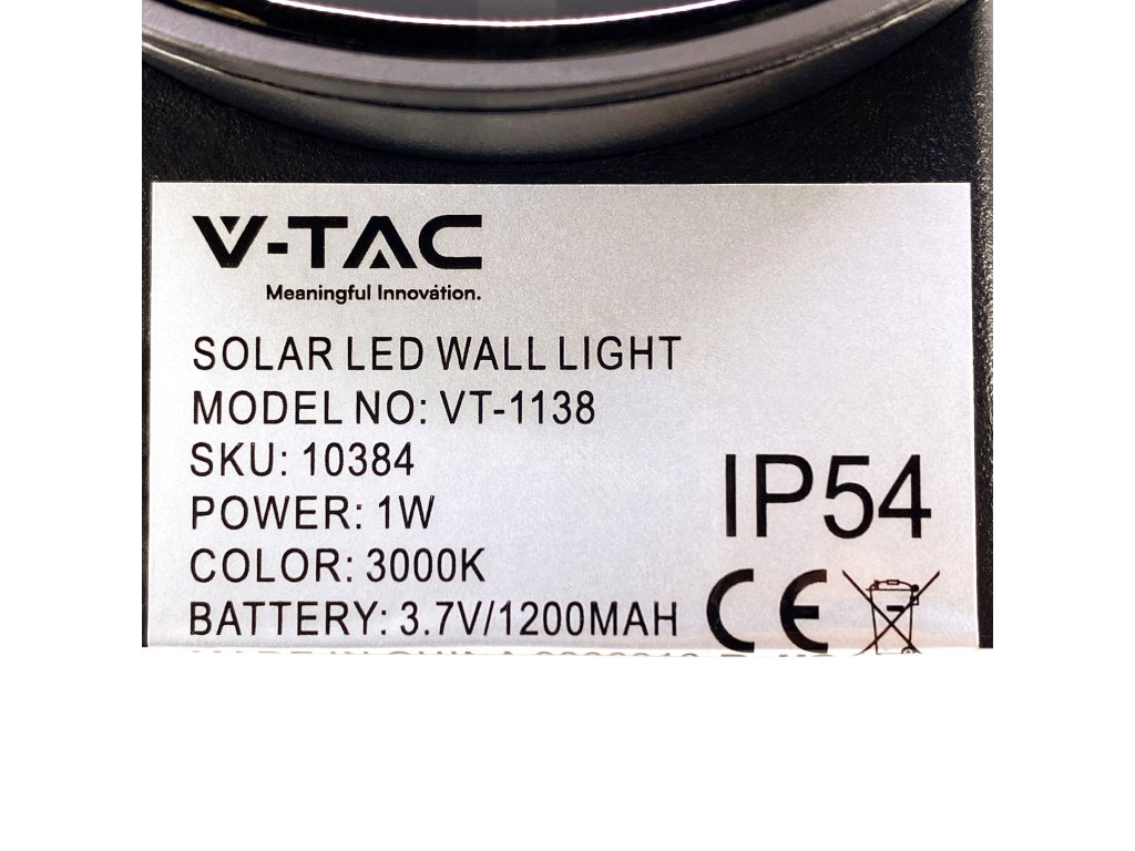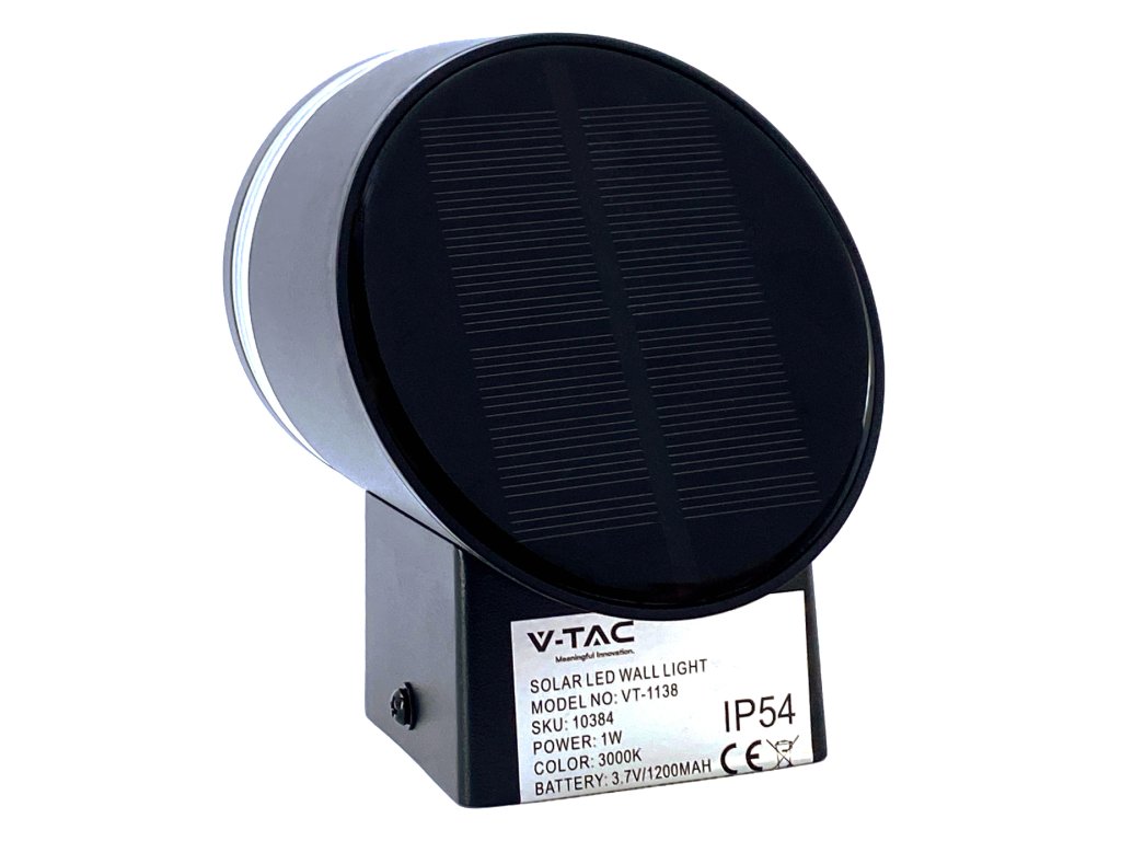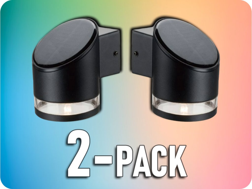 Lampă de perete Solar LED, 1W, negru, IP44, 3000K/2-PACK!