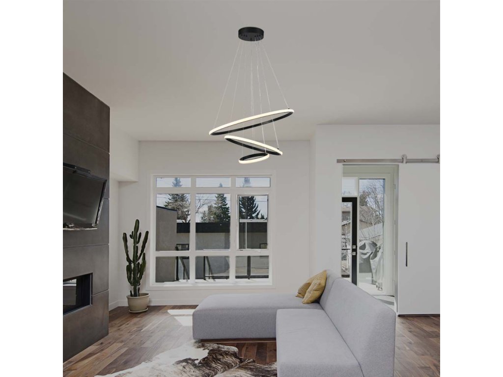 Lumină suspendată LED de designer 32W, 3880lm, neagră, 3000K