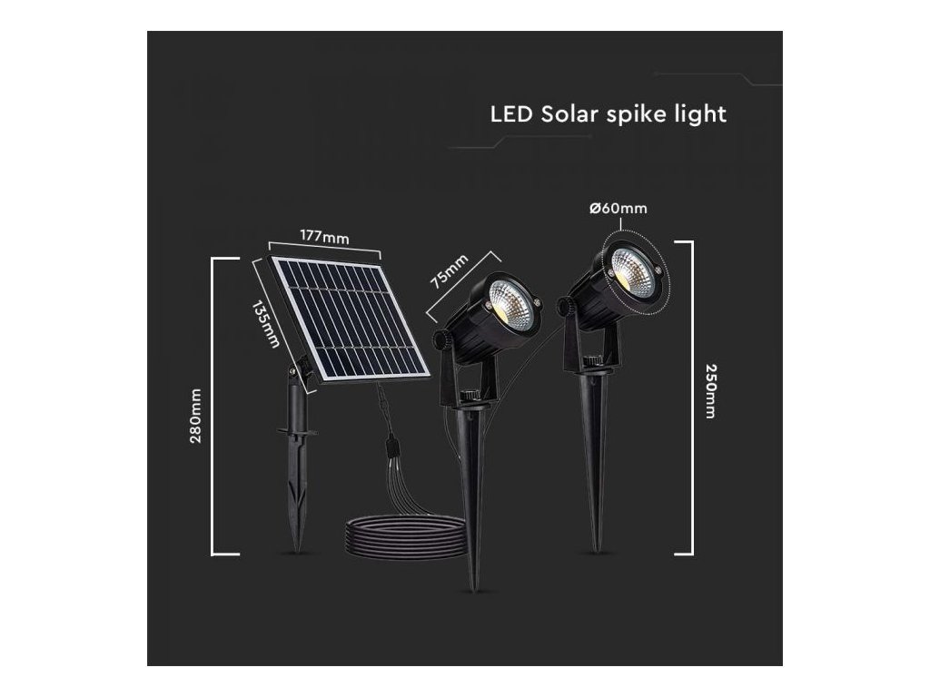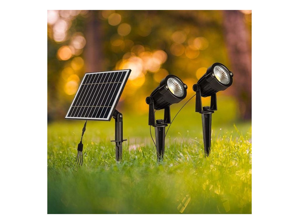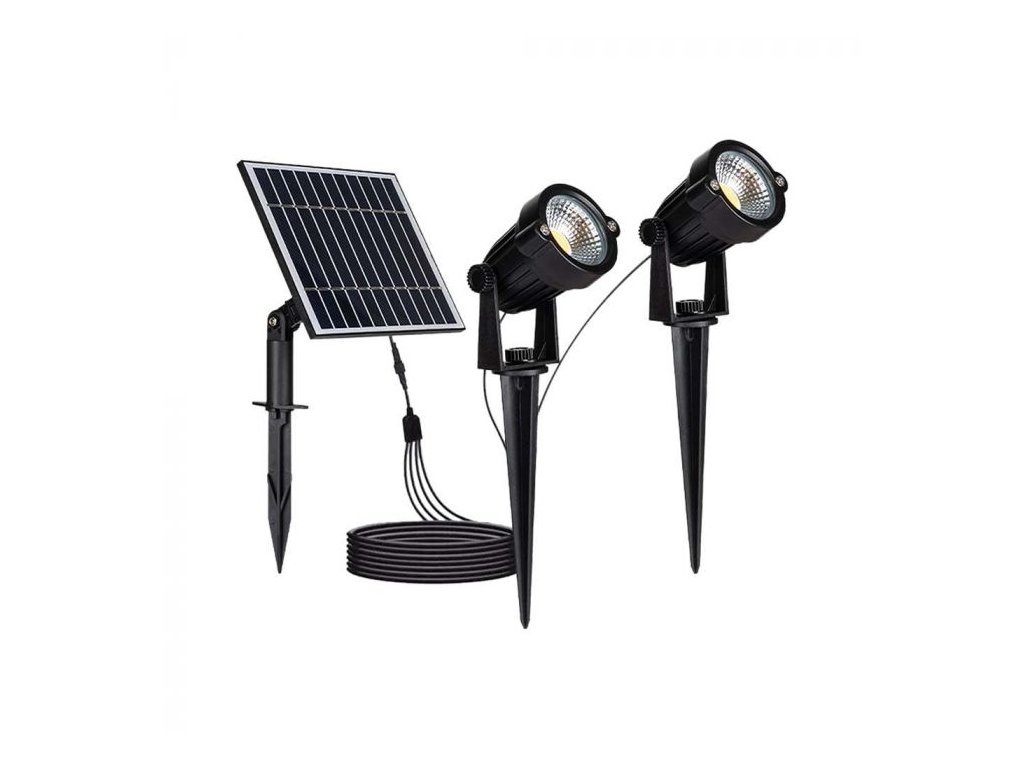 Luminețe LED solare înfipte 2x1.2W, 2x90lm, IP65, negre, 3000K