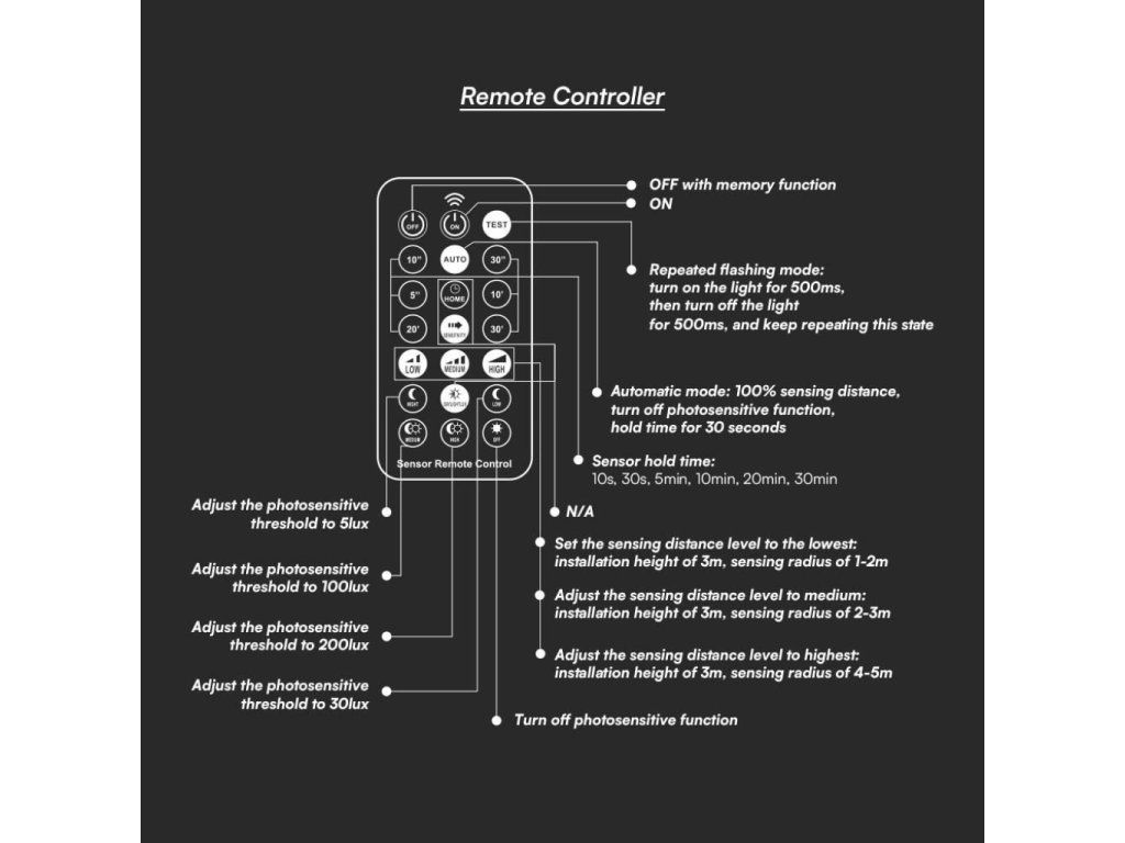 - Setul include o telecomandă care permite programarea precisă a senzorului de mișcare