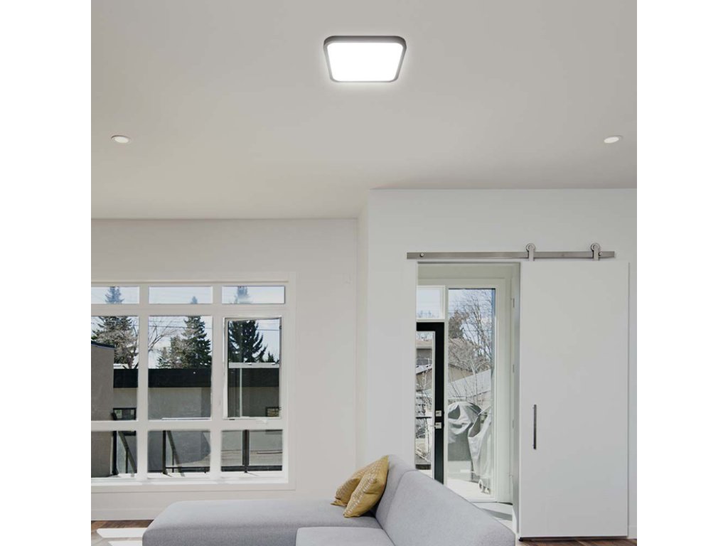 Lustru LED cu senzor de microunde și senzor de lumină 36W, 3820lm, IP44, 4000K, pătrată, cadru negru