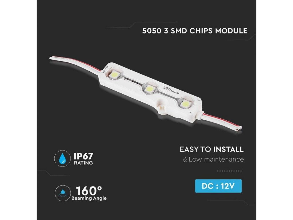 Modul LED SMD5050 3LED, 6000K, IP67