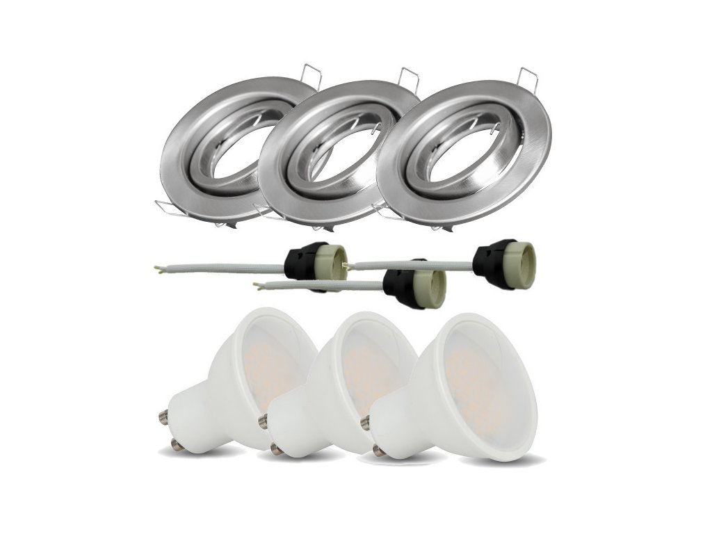 Pachet 3 x cadru GU10, nichel satinat, 3 x bec LED, 5W