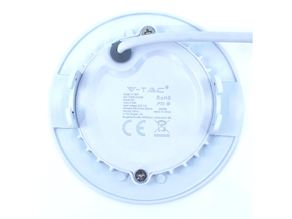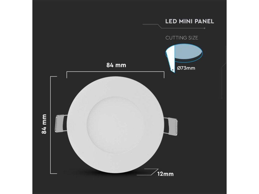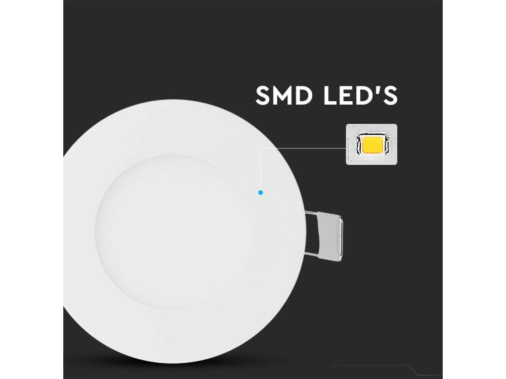 Panou LED încastrat cu sursă de alimentare, 3W, 130lm, rotund/2-PACK!