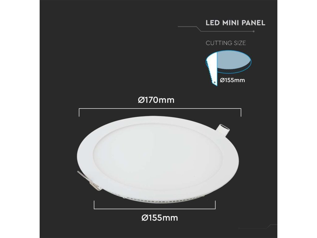 Panou LED incorporat cu alimentare, 12W, 1160lm, rotund