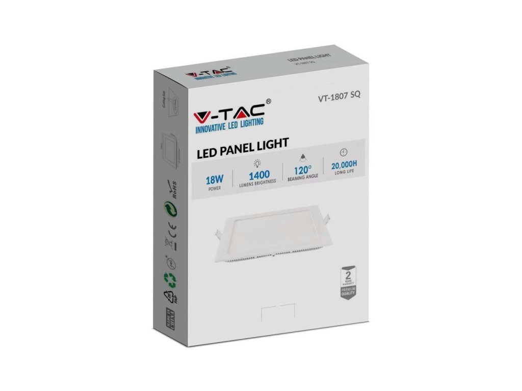 Panou LED incorporat cu alimentare, 18W, 1400lm, patrat