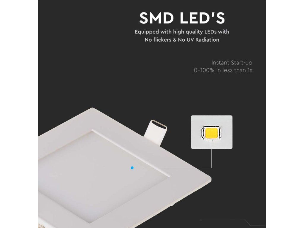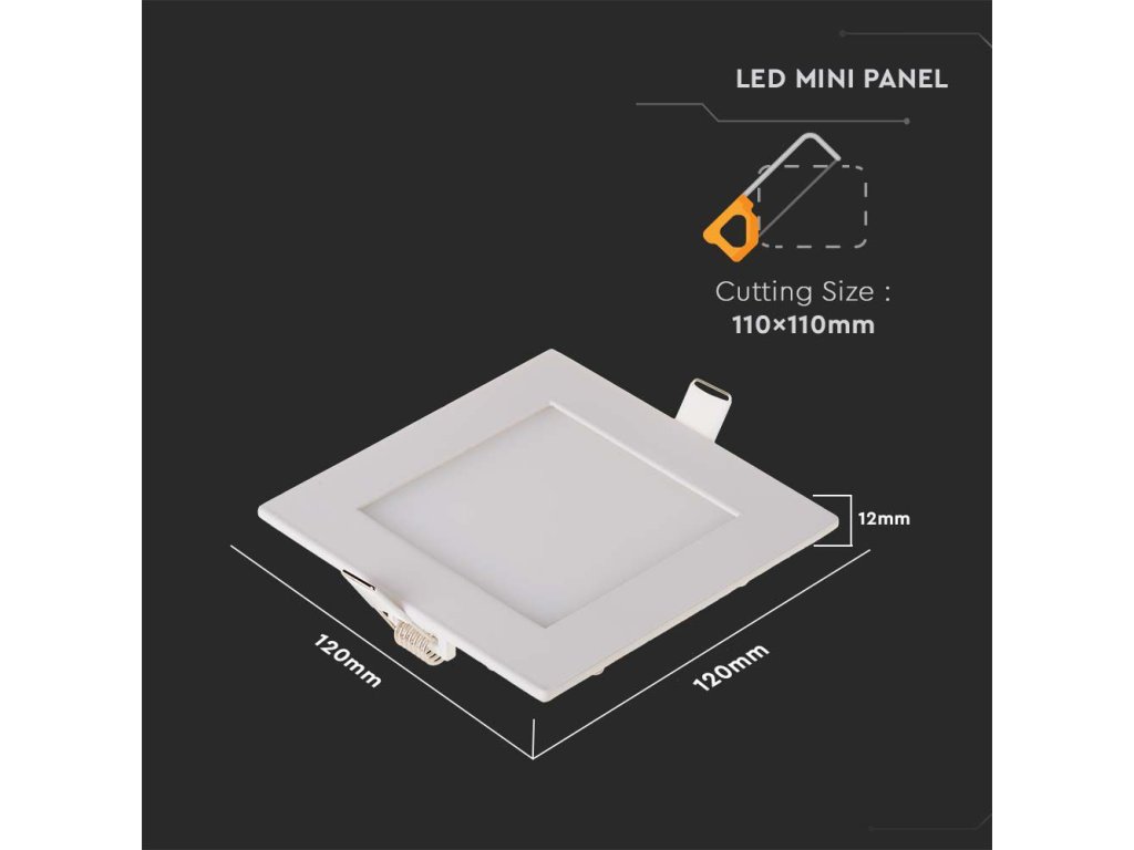 Panou LED incorporat cu alimentare 6W, 490lm, pătrat