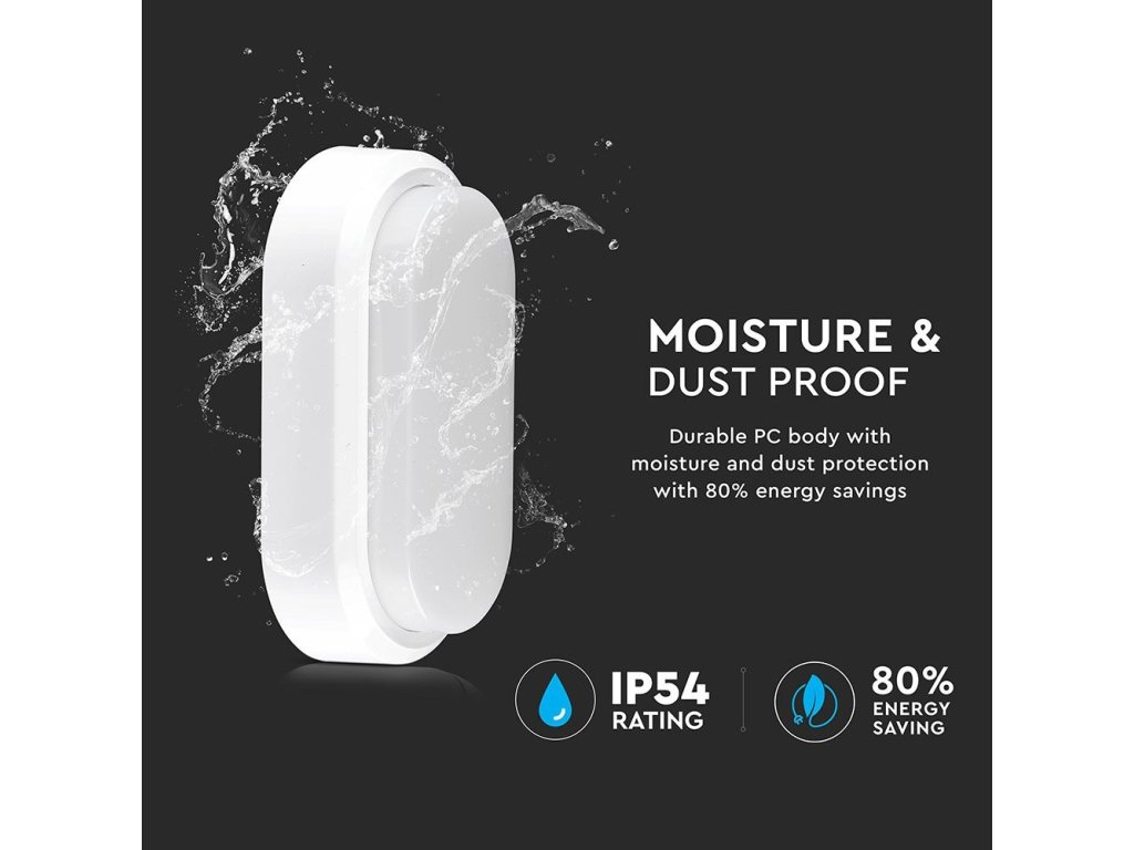 Plafon/perete LED 8W, 560Lm, IP54, alb