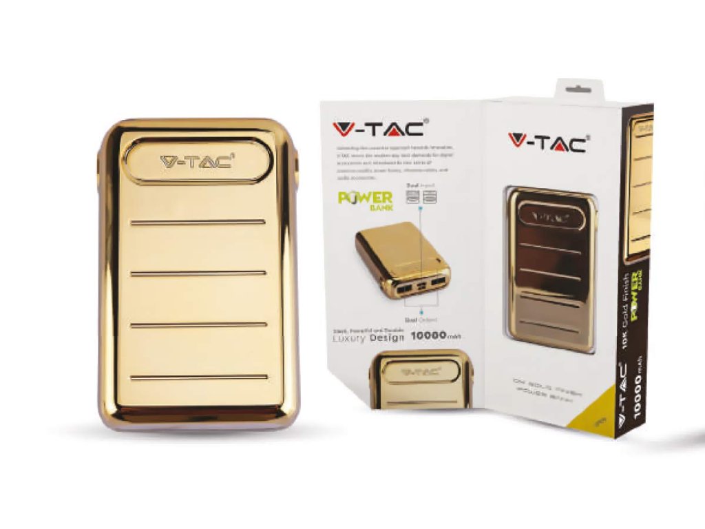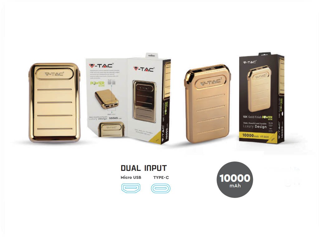 Power Bank 10.000 mAh, 2XUSB + USB-C, culoare aurie