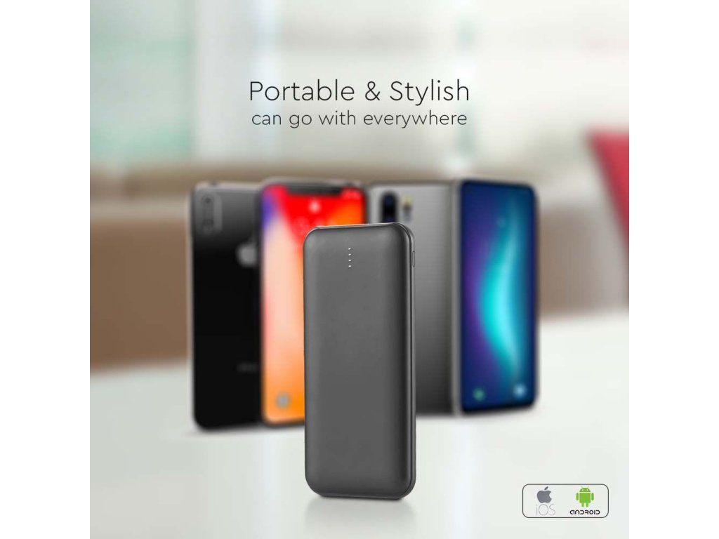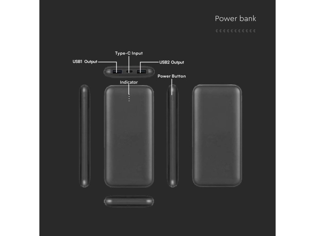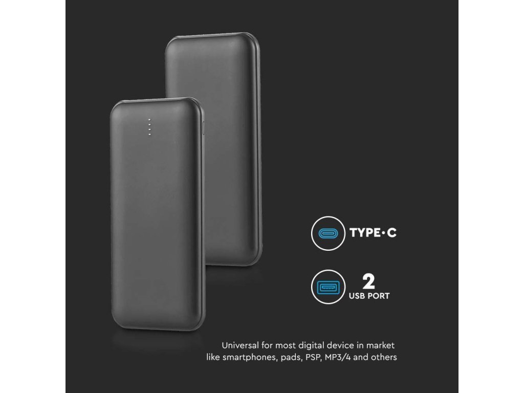 Powerbank 10000mAh, 2x USB + 1x USB tip C, negru