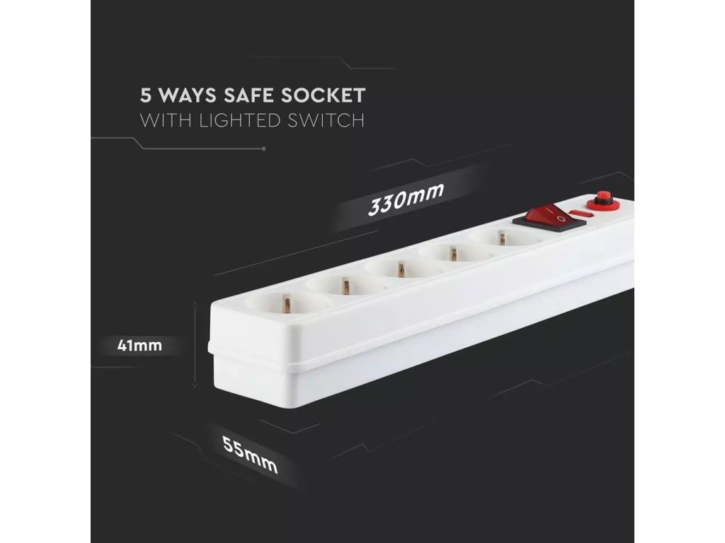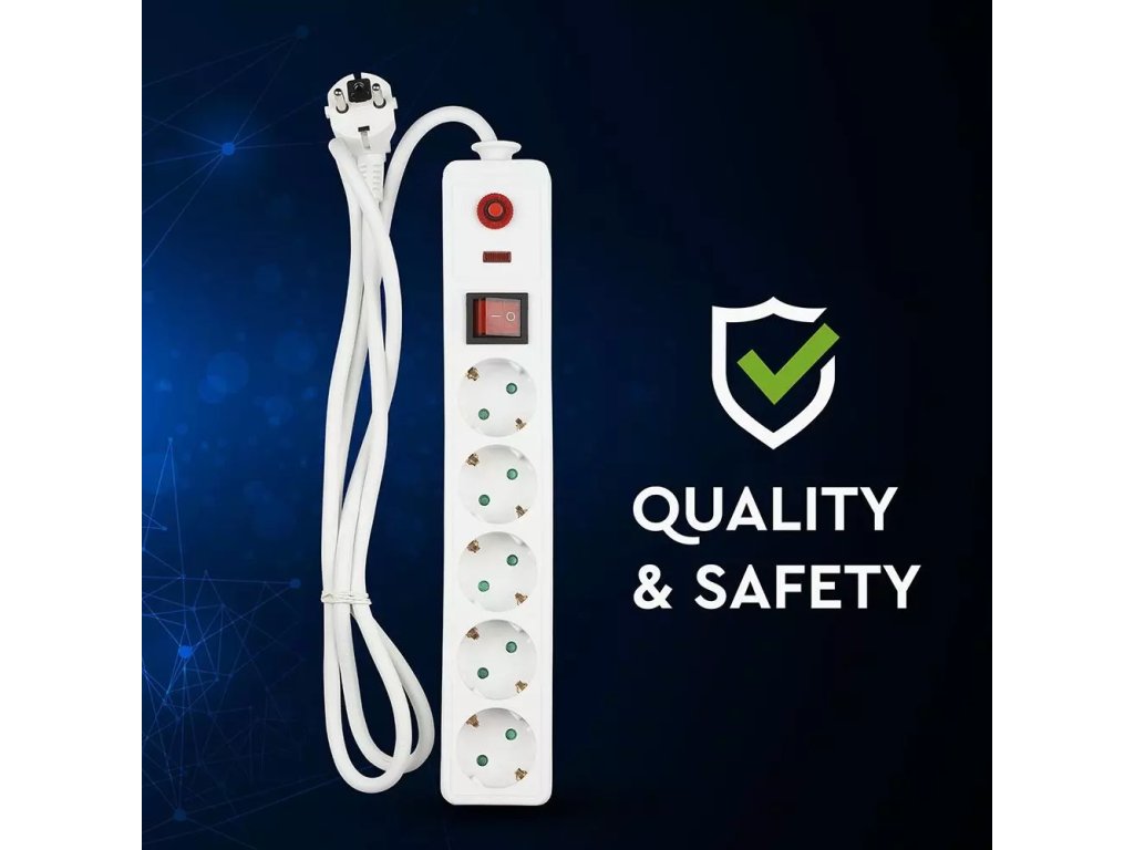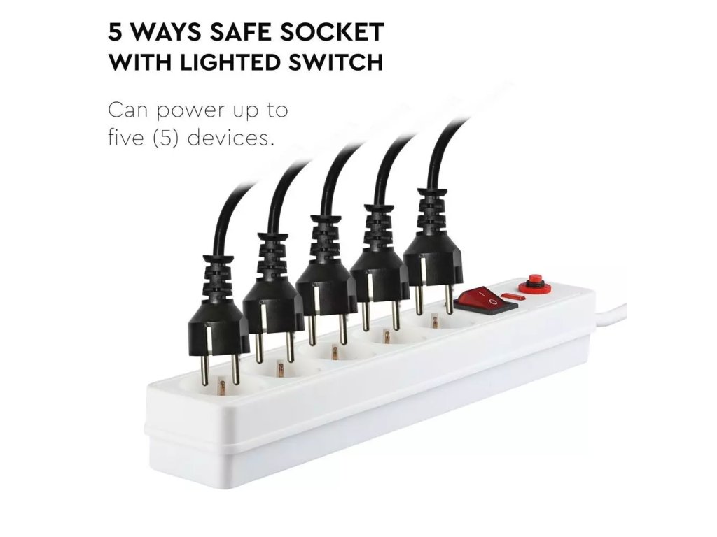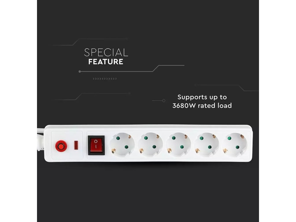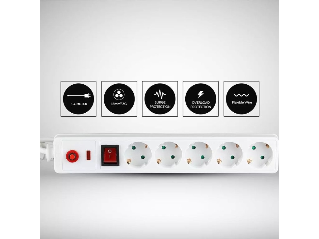 Prelungitor 1,4m cu protecție la supratensiune, 5x16A, max. 3680W