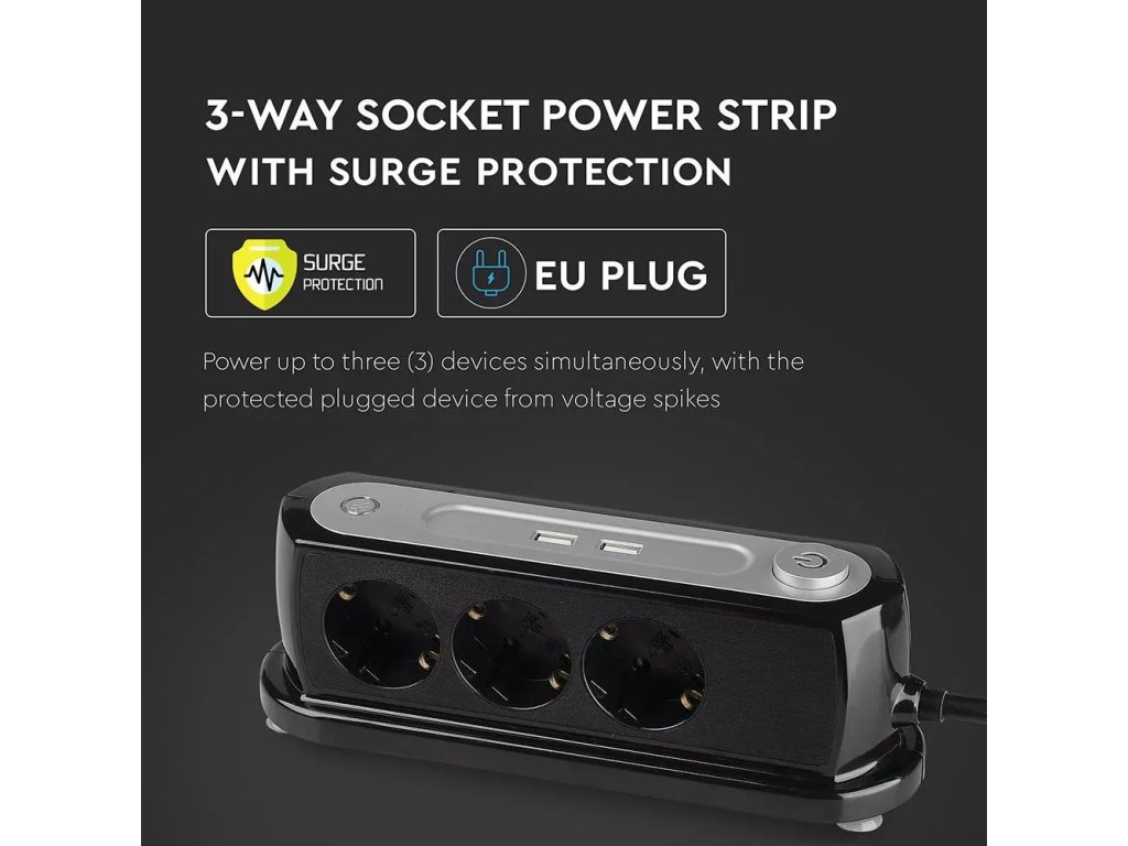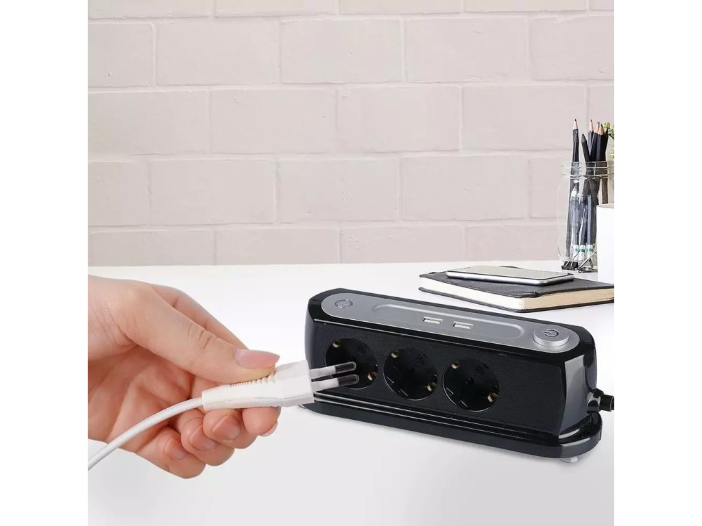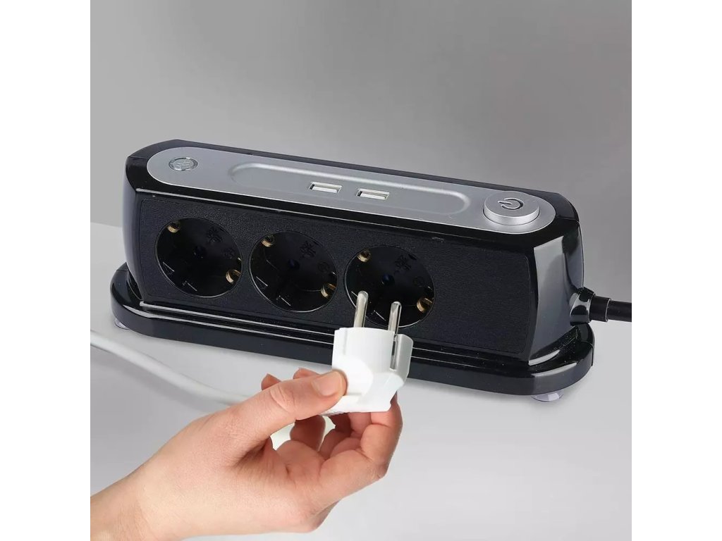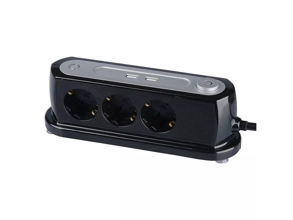 Prelungitor pentru masă cu protecție la supratensiune, max 3500W, 2xUSB, IP20