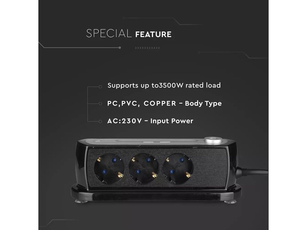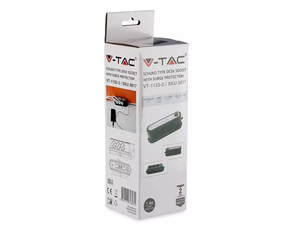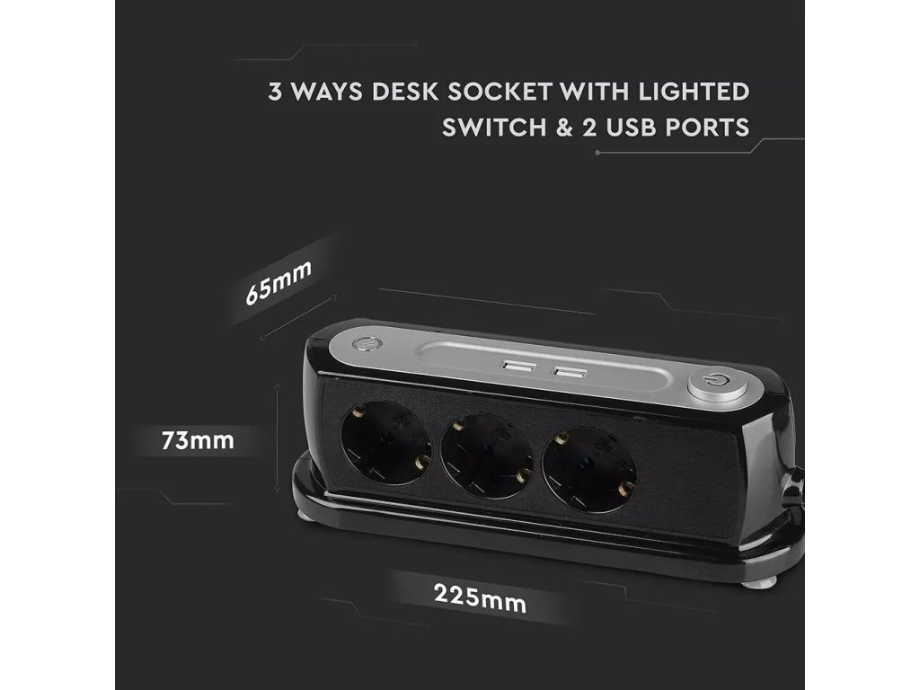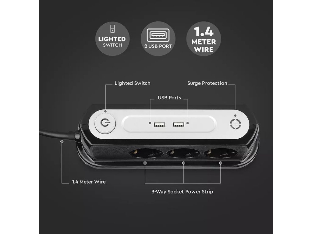 Prelungitor pentru masă cu protecție la supratensiune, max 3500W, 2xUSB, IP20