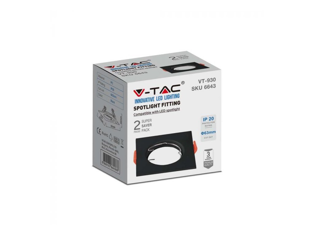 Rame pentru becuri GU10/GU5.3, pătrate, negre, set de 2 bucăți