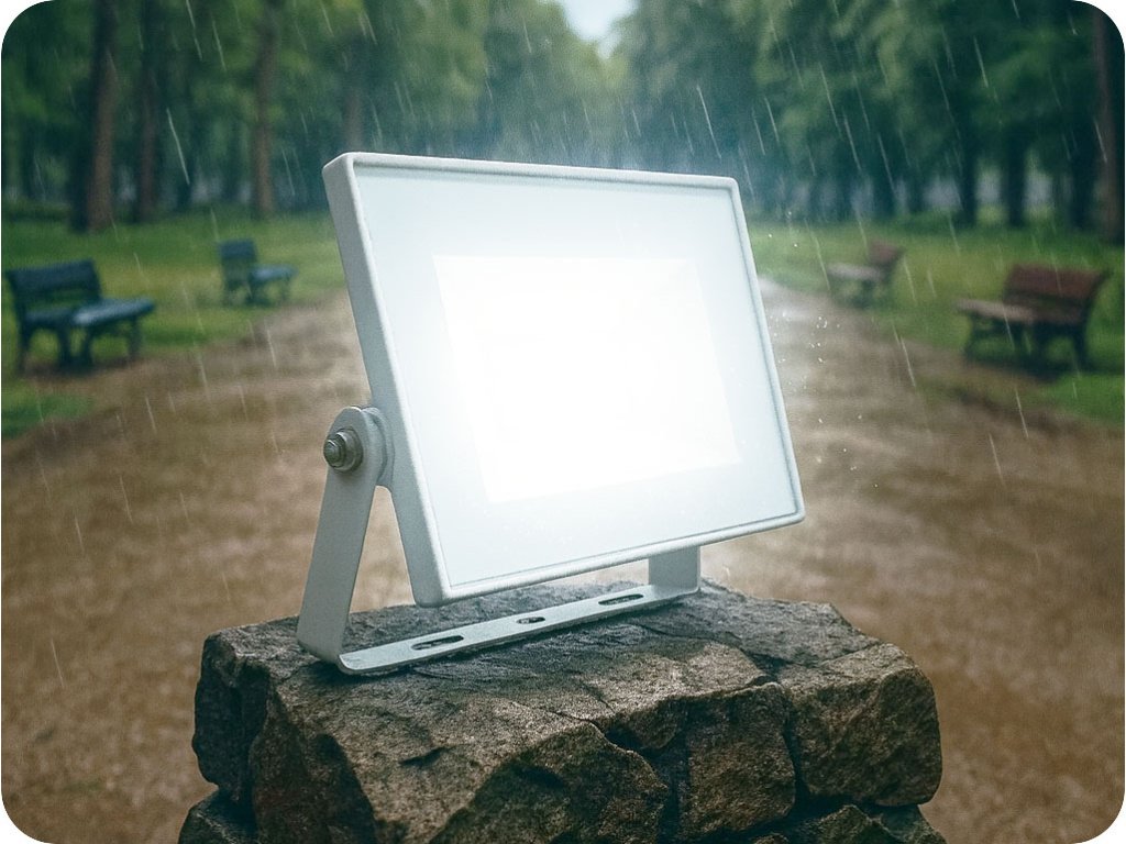 Este impermeabil (IP65) și, prin urmare, poate fi instalat în zone exterioare, cum ar fi grădini, curți interioare, vile etc.