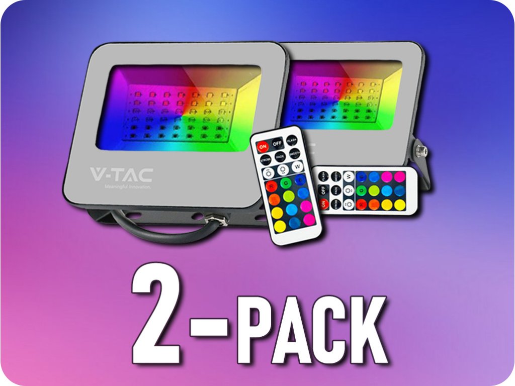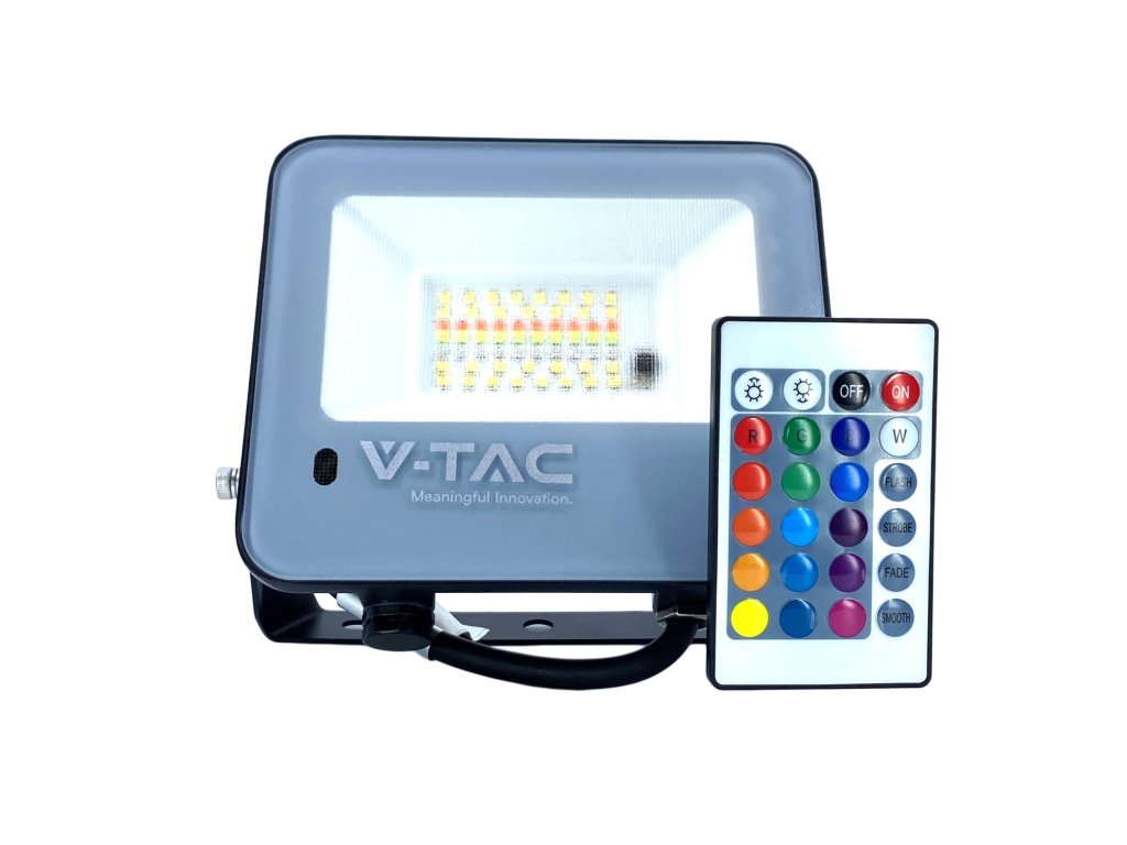 Reflector LED RGB+W (6500K) cu telecomandă 30W, 2310lm, IP65/2-PACK!